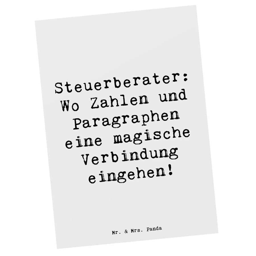 Wenn Du auf der Suche nach einem besonderen Geschenk für einen Steuerberater bist, dann ist unsere Postkarte "Steuerberater: Wo Zahlen und Paragraphen eine magische Verbindung eingehen!" aus der einzigartigen Berufe-Kollektion von Mr. & Mrs. Panda genau das Richtige für Dich!