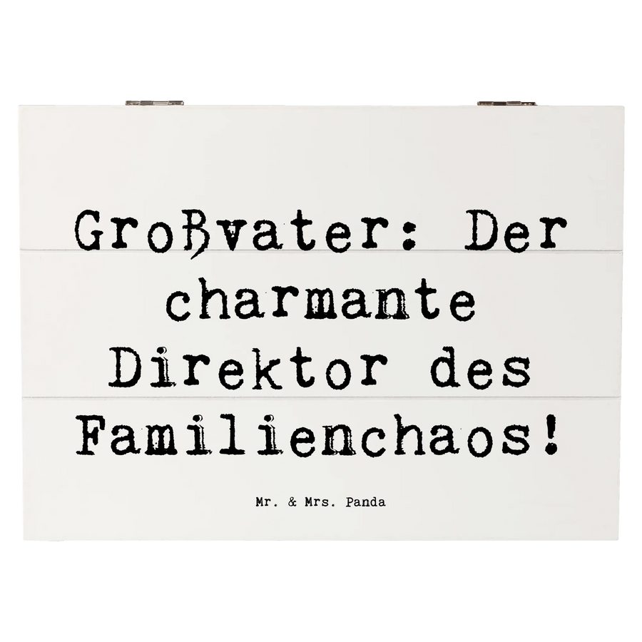 Entdecke die wunderschöne Holzkiste von Mr. & Mrs. Panda, die das perfekte Geschenk für Großväter ist! Diese Schatzkiste, ausgestattet mit dem charmanten Spruch 'Großvater: Der charmante Direktor des Familienchaos!', ist nicht nur ein aufmerksames Präsent, sondern auch ein liebevoller Aufbewahrungsort für all die wertvollen Erinnerungen, die Großeltern mit ihren Enkeln teilen.