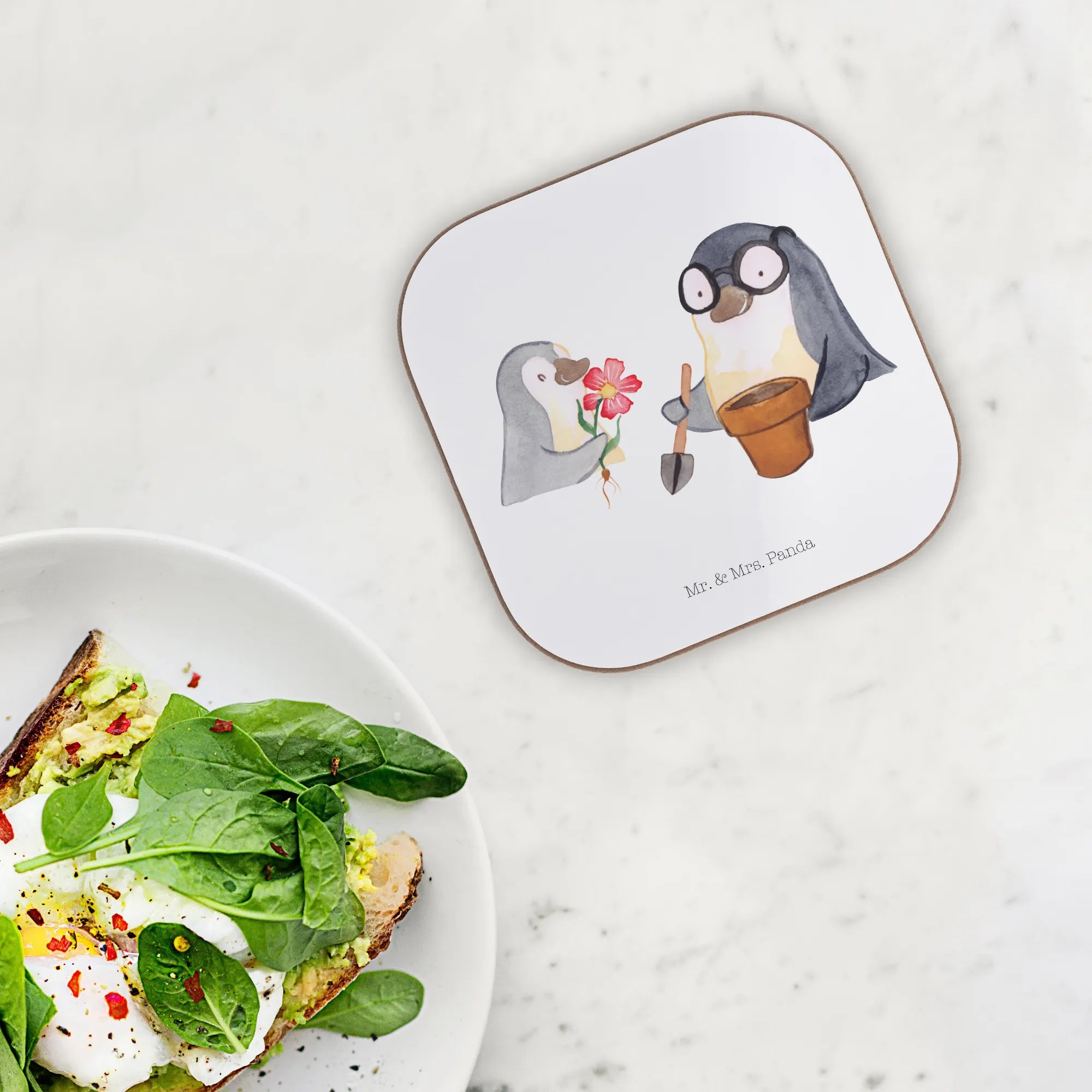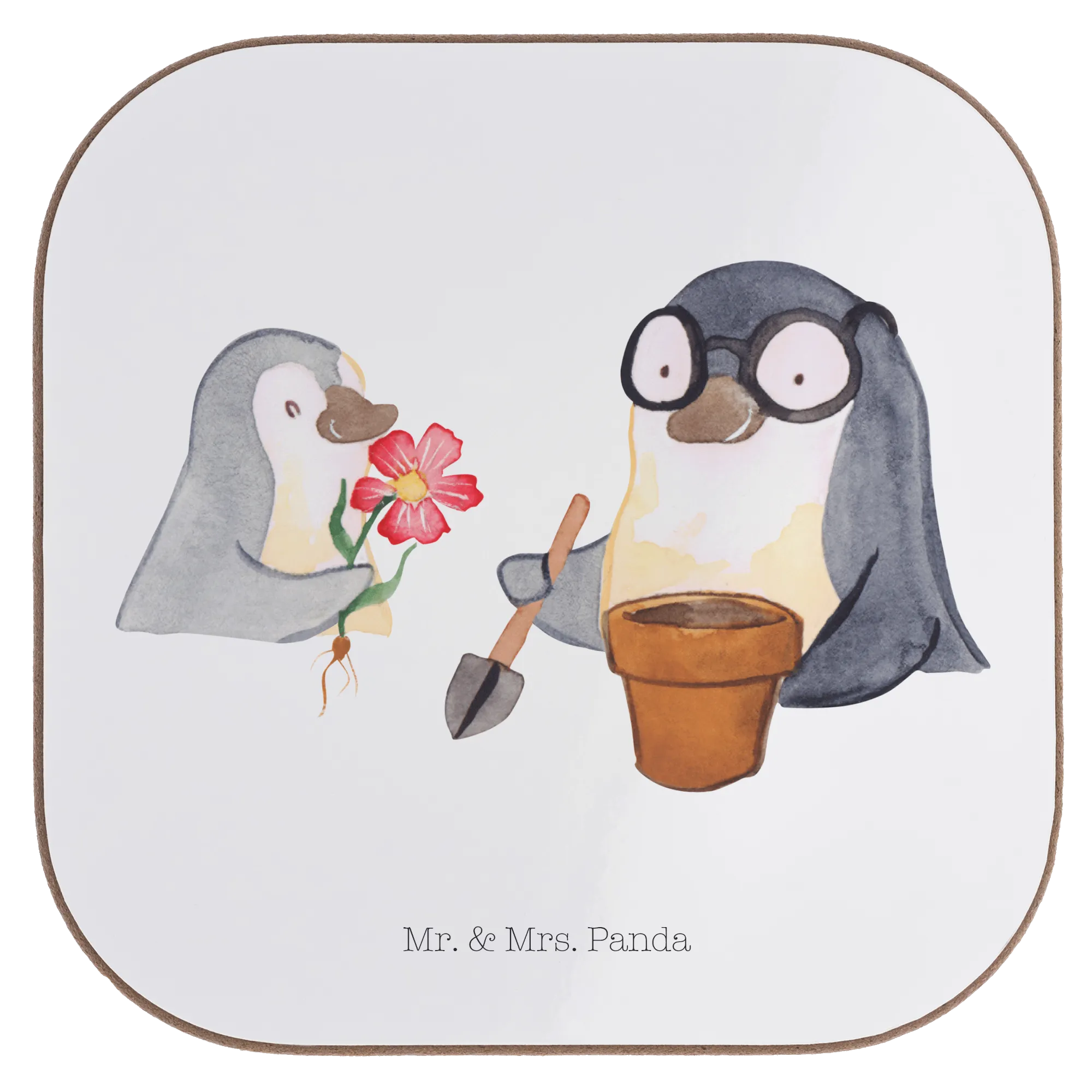 Podkładka Pingwin dziadek sadzi kwiaty - z napisem