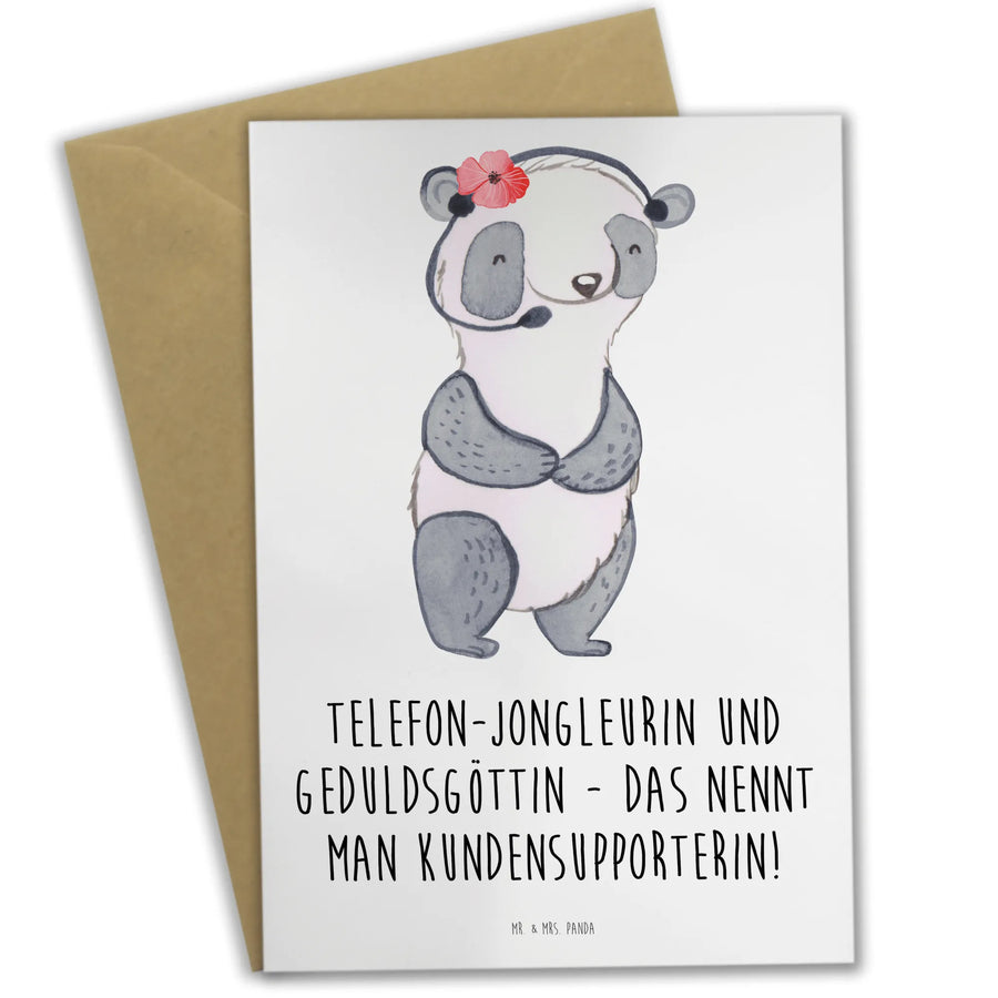 Die wunderschöne Grußkarte "Kundensupporterin" von Mr. & Mrs. Panda ist das perfekte Geschenk für all jene, die im Kundenservice tätig sind oder einfach nur einen lieben Gruß versenden möchten.