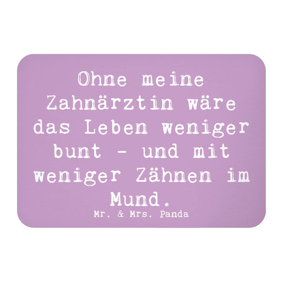 Suchst Du nach einem besonderen Geschenk für Deine Zahnärztin oder vielleicht für jemanden, der in diesem wunderbaren Beruf arbeitet? Dann ist der Kühlschrankmagnet "Ohne meine Zahnärztin wäre das Leben weniger bunt - und mit weniger Zähnen im Mund." von Mr. & Mrs. Panda genau das Richtige für Dich! Dieser Magnet verbindet Funktionalität mit Charme und bringt auf jede Pinnwand Schwung und Farbe.
