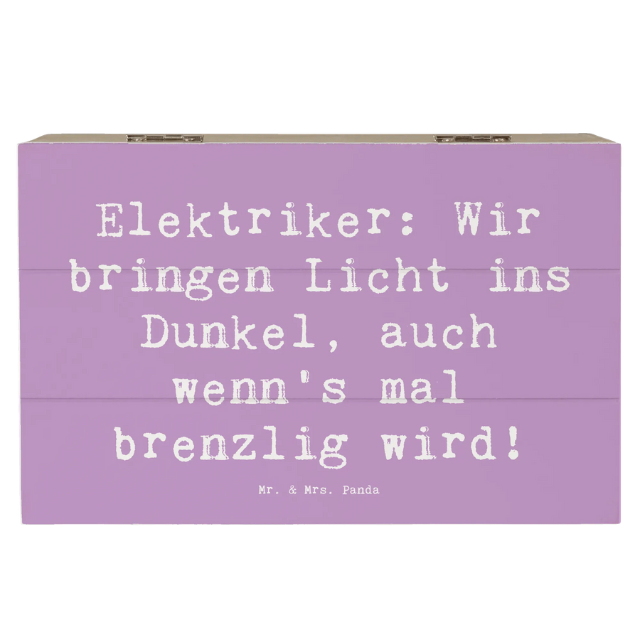 Die wunderschöne Holzkiste von Mr. & Mrs. Panda ist das perfekte Geschenk für alle Elektriker und Berufspassionierte! Mit dem liebevoll gestalteten Spruch "Elektriker: Wir bringen Licht ins Dunkel, auch wenn's mal brenzlig wird!" strahlt diese Kiste nicht nur Charme, sondern auch eine Portion Humor aus.