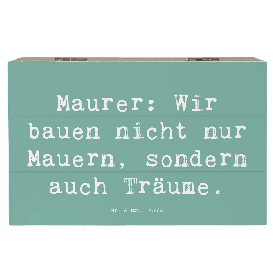 Die Flächen der Kiste sind liebevoll mit dem Spruch "Maurer: Wir bauen nicht nur Mauern, sondern auch Träume." verziert. Diese Worte sind perfekt für jeden Maurer und dessen Leidenschaft für den Beruf.