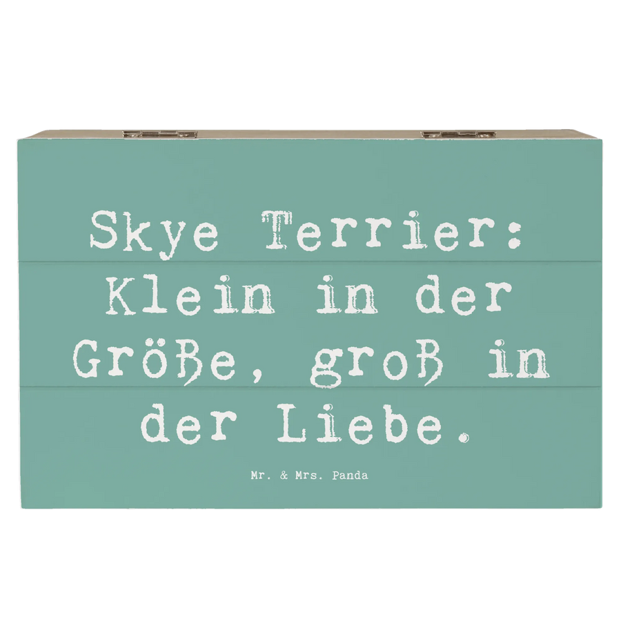 Entdecke die wundervolle Holzkiste von Mr. & Mrs. Panda, die mit dem liebevollen Motiv des Skye Terriers bedruckt ist. Diese Kiste ist nicht nur ein echter Hingucker, sondern auch der perfekte Aufbewahrungsort für Deine schönsten Schätze. Egal, ob Du Erinnerungen an besondere Anlässe, Kindheitserinnerungen oder einfach nur Fotos sammeln möchtest, diese Erinnerungskiste ist genau das Richtige für Dich! Mit einem liebevollen Spruch, der sagt: „Skye Terrier: Klein in der Größe, groß in der Liebe“, wird die Kiste zu einem ganz besonderen Geschenk für jeden Hundefan.
