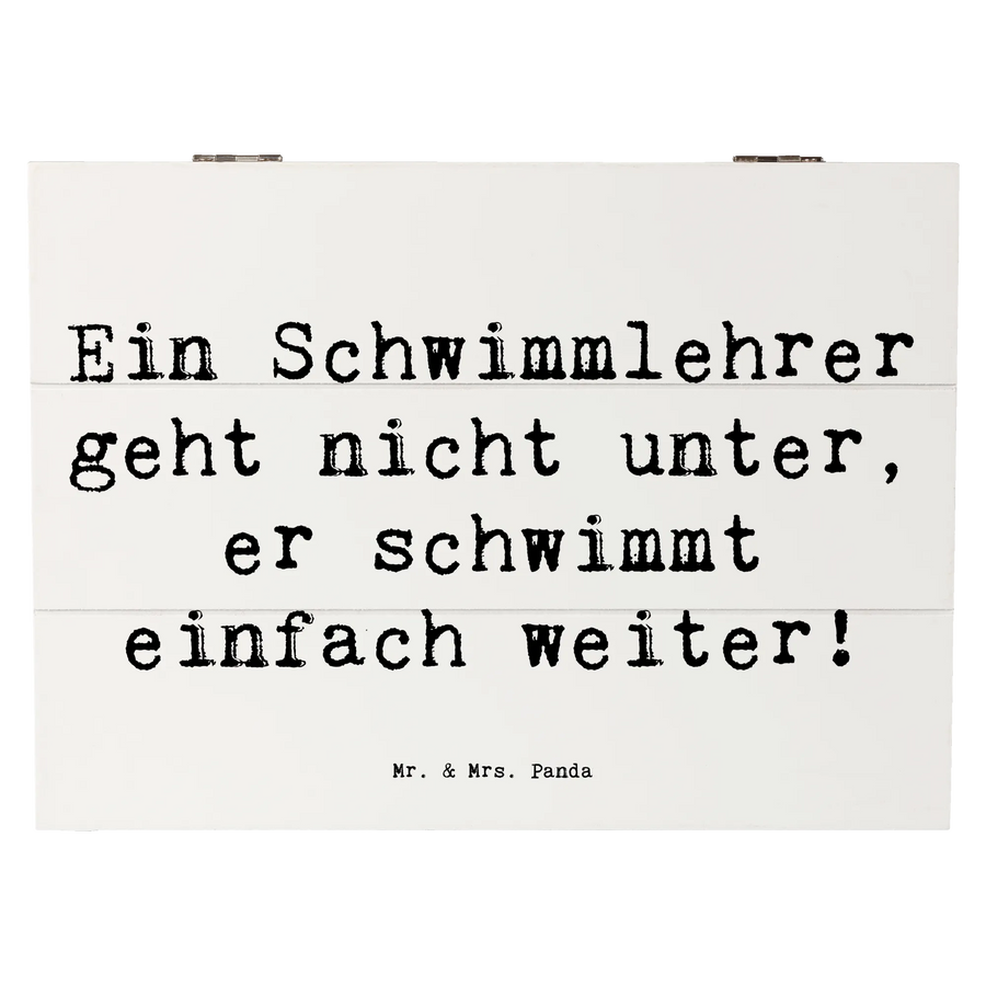Mit dem liebevollen Spruch „Ein Schwimmlehrer geht nicht unter, er schwimmt einfach weiter!“ ist diese Holzkiste von Mr. & Mrs. Panda ein kleines Statement voller Wertschätzung. Ideal als Aufbewahrungsbox, Geschenkbox oder Erinnerungskiste – sie vereint hübsches Design mit durchdachter Funktionalität.
