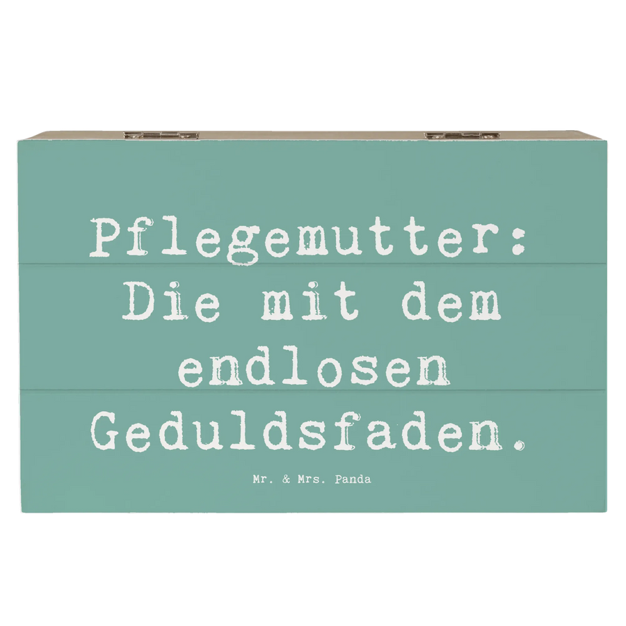 Eine wunderschöne Holzkiste von Mr. & Mrs. Panda - die perfekte Geschenkidee für alle Pflegemütter! Diese stilvolle Schatzkiste, bedruckt mit dem liebevollen Motto "Pflegemutter: Die mit dem endlosen Geduldsfaden", ist mehr als nur ein Aufbewahrungsort für all die kleinen Schätze des Lebens.