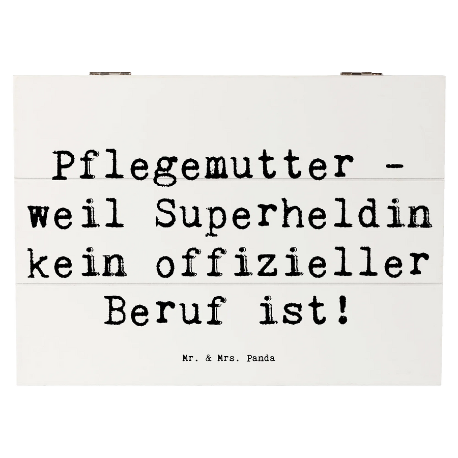 Jede Pflegemutter ist ein wahrer Held und verdient eine ganz besondere Anerkennung. Unsere wunderschöne Holzkiste von Mr. & Mrs. Panda ist perfekt geeignet, um den unermüdlichen Einsatz von Pflegemüttern zu ehren. Diese liebevoll gestaltete Kiste mit dem Spruch "Pflegemutter - weil Superheldin kein offizieller Beruf ist!" bringt das Herz zum Strahlen und bietet einen wundervollen Aufbewahrungsort für die kostbaren Erinnerungen, die im Laufe der Jahre entstehen – sei es ein persönliches Geschenk oder eine Erinnerungskiste für das Pflegekind.