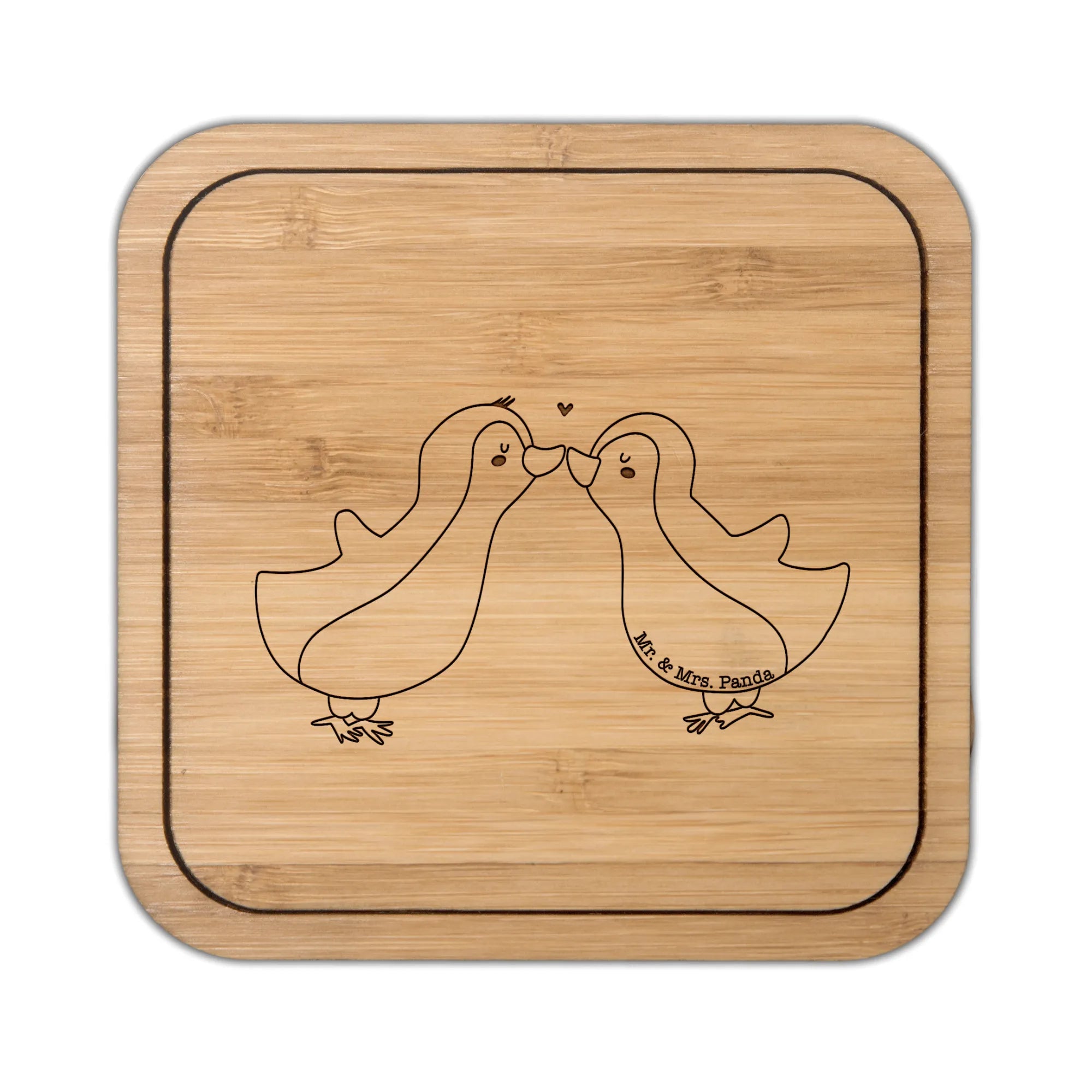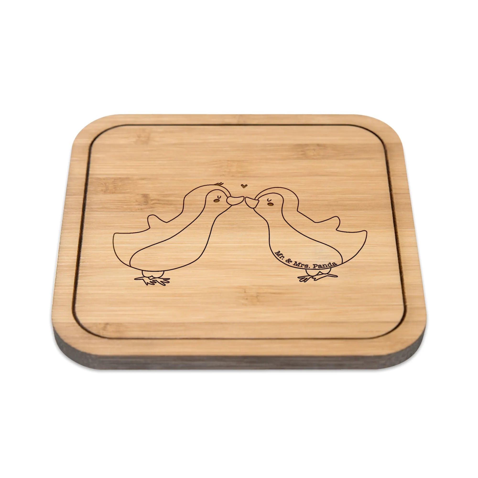 Kwadratowa podkładka Pingwin Miłość - z napisem