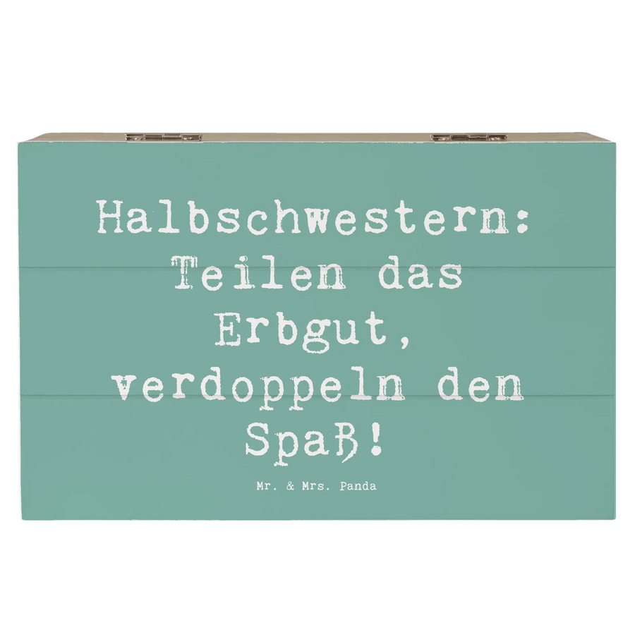 Egal ob zum Geburtstag, Hochzeitstag oder einfach als kleines Dankeschön – diese Aufbewahrungsbox ist genau das richtige Geschenk. Verschenke eine Portion Liebe und viele unvergessliche Erinnerungen mit der Holzkiste "Halbschwester" von Mr. & Mrs. Panda!