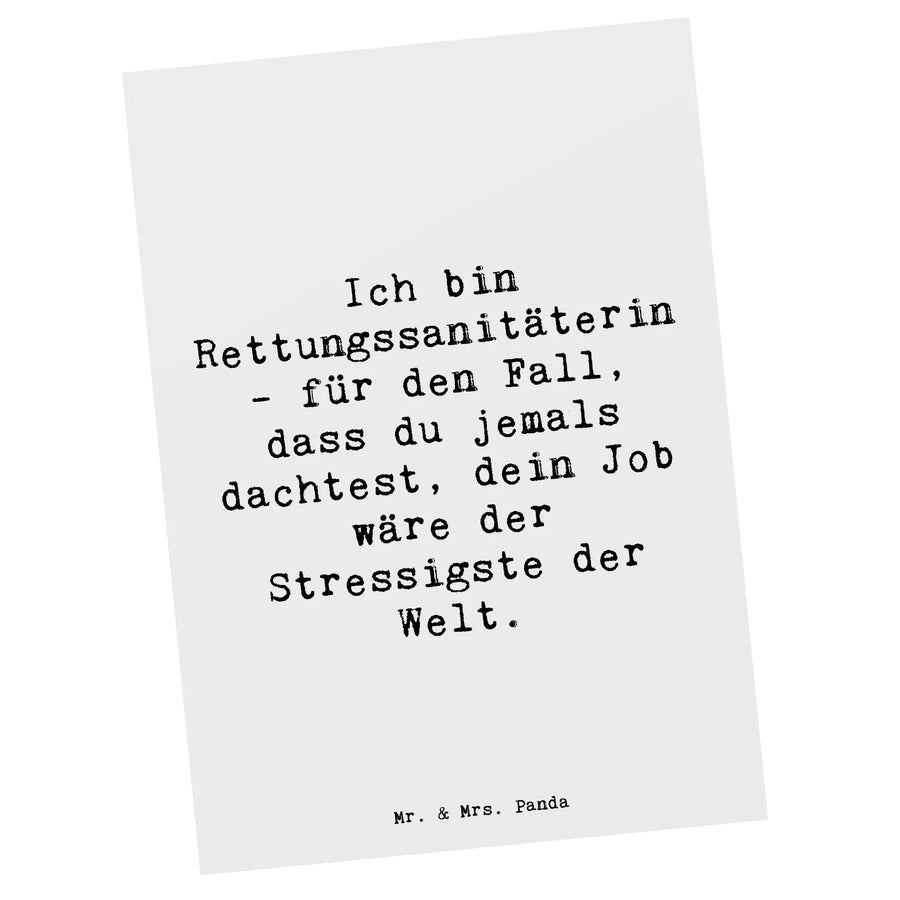 Postkarte Spruch Ich bin Rettungssanitäterin - für den Fall, dass du jemals dachtest, dein Job wäre der Stressigste der Welt. - Weiß