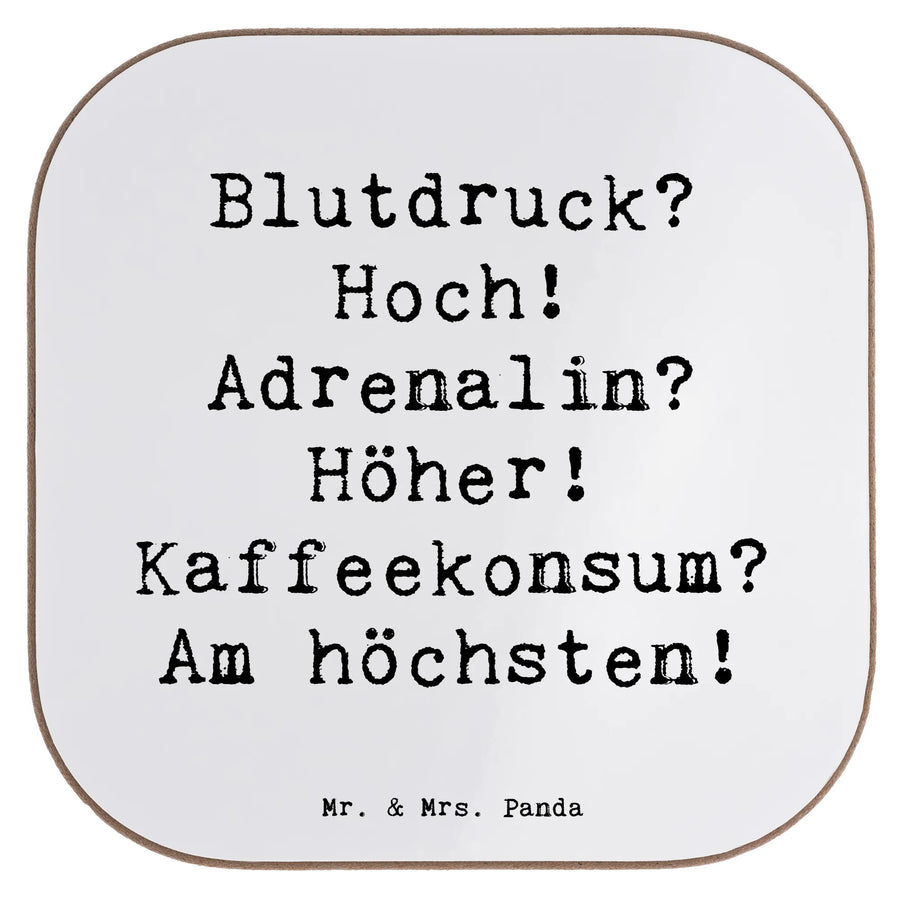 Untersetzer Spruch Blutdruck? Hoch! Adrenalin? Höher! Kaffeekonsum? Am höchsten! - Weiß