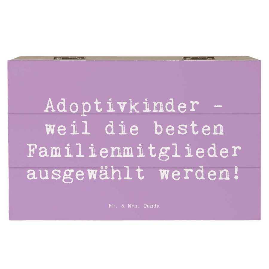 Entdecke die zauberhafte Holzkiste von Mr. & Mrs. Panda, die perfekt für Adoptivkinder ist! Diese wunderschöne Kiste mit dem liebevollen Spruch "Adoptivkinder - weil die besten Familienmitglieder ausgewählt werden!" ist mehr als nur ein Aufbewahrungsort - sie wird zum wertvollen Schatz für Erinnerungen und besondere Momente in der Familie.