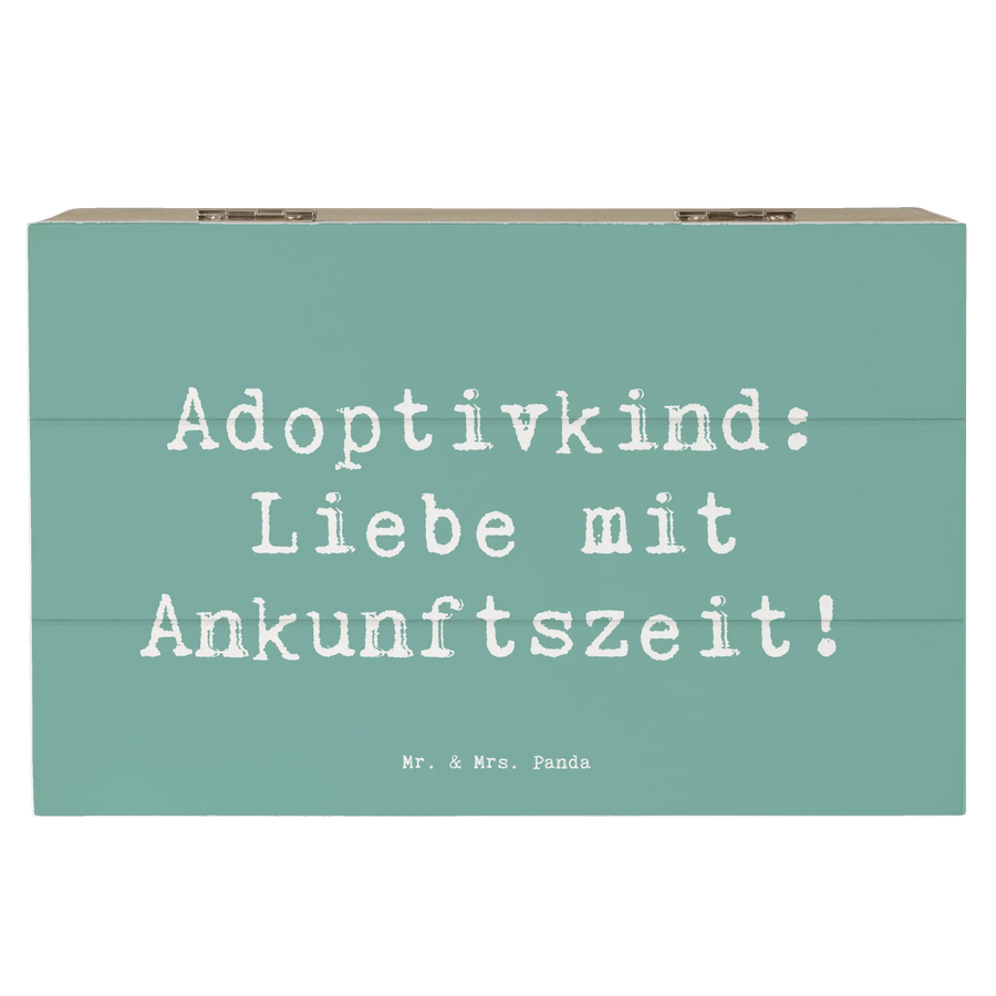 Eine wunderschöne Holzkiste von Mr. & Mrs. Panda, die nicht nur zum Aufbewahren von Schätzen dient, sondern auch voller Liebe und Bedeutung ist! Diese besondere Kiste mit dem Motiv 'Adoptivkind: Liebe mit Ankunftszeit!' ist das perfekte Geschenk für all jene, die ein Adoptivkind in ihr Leben aufgenommen haben.