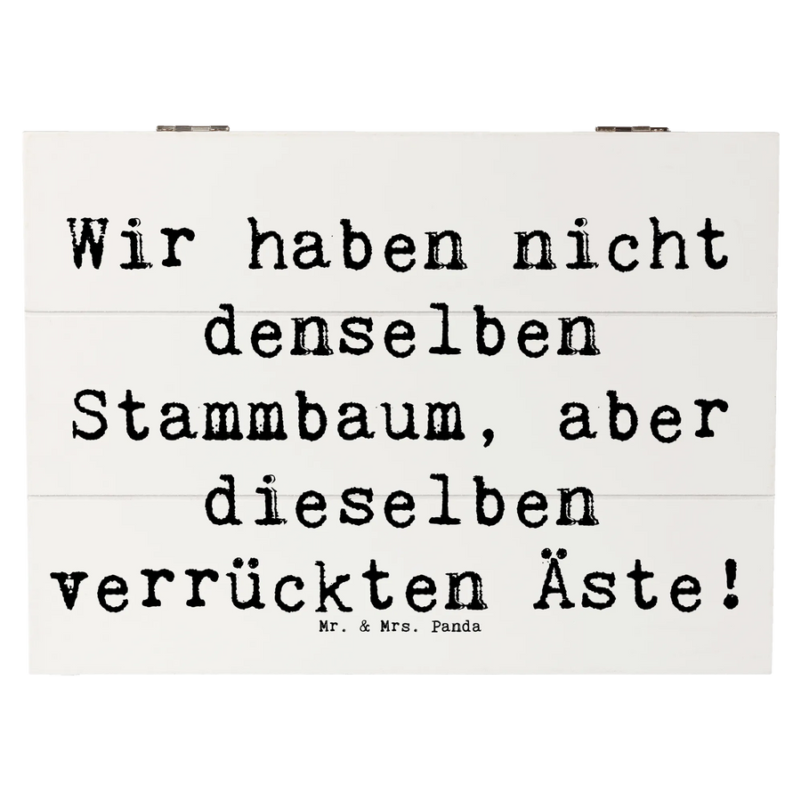 Mit einem charmanten Design und dem Spruch 'Wir haben nicht denselben Stammbaum, aber dieselben verrückten Äste!' ist diese Erinnerungskiste perfekt geeignet für Jubiläen, Geburtstage oder einfach als liebevolles Dankeschön an die wunderbaren Menschen in Deinem Leben. Die Kiste misst 190 mm x 120 mm x 100 mm und ist aus robuster Holzfaser gefertigt, was sie besonders stabil und langlebig macht.