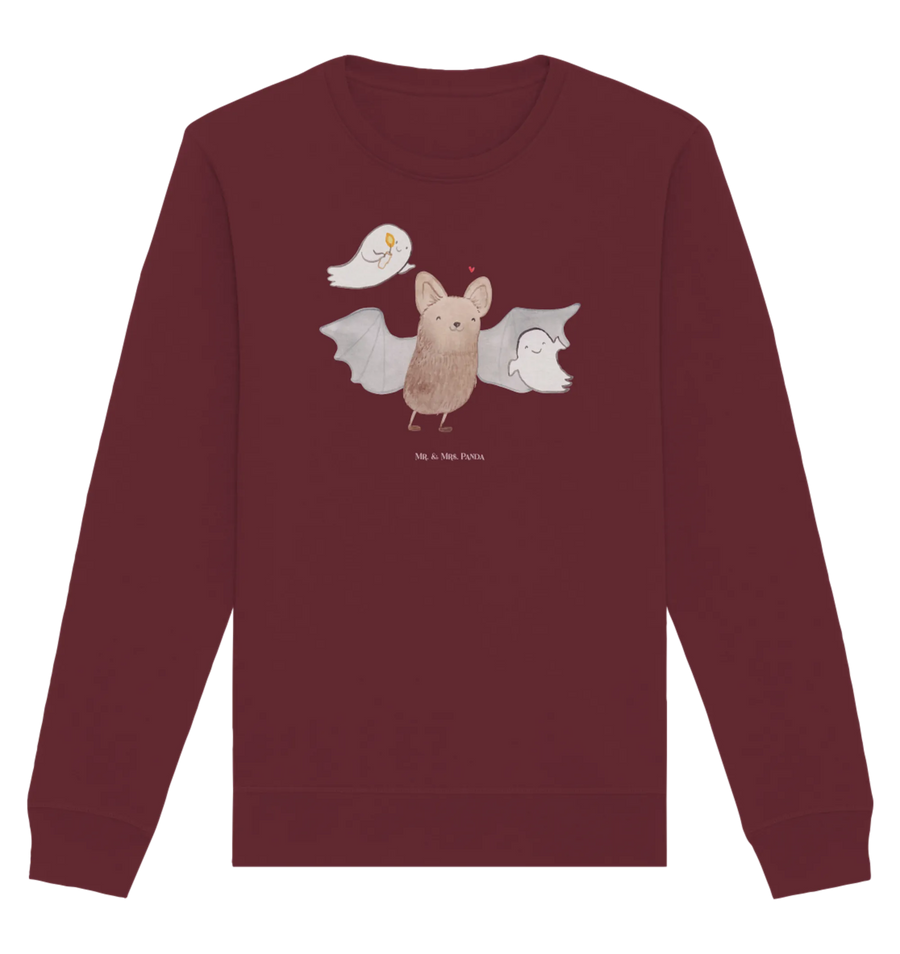 Entdecke unseren kuscheligen Bio-Pullover aus der Halloween-Kollektion mit dem zauberhaften Motiv „Fledermaus Gespenster“. Die niedliche Fledermaus und ihre zwei kleinen Gespenster-Freunde wurden liebevoll in Aquarell von Mrs. Panda gestaltet und bringen jede Menge Herbst- und Halloween-Flair in deinen Alltag. 🍂🦇