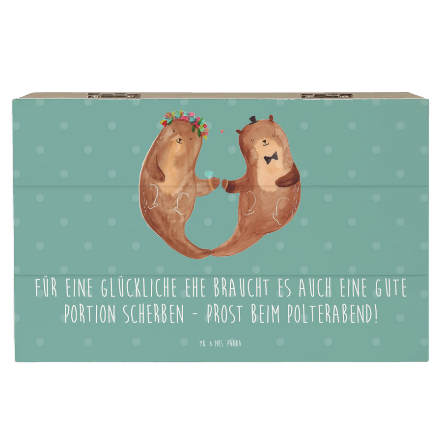 Entdecke die zauberhafte Holzkiste von Mr. & Mrs. Panda, die nicht nur als dekorative Schatzkiste dient, sondern auch ein perfektes Geschenk für den Polterabend ist! Diese wundervolle Kiste hat das Motto 'Für eine glückliche Ehe braucht es auch eine gute Portion Scherben - Prost beim Polterabend!'. Sie eignet sich ideal, um Erinnerungen an die schönsten Momente in einer Ehe festzuhalten.