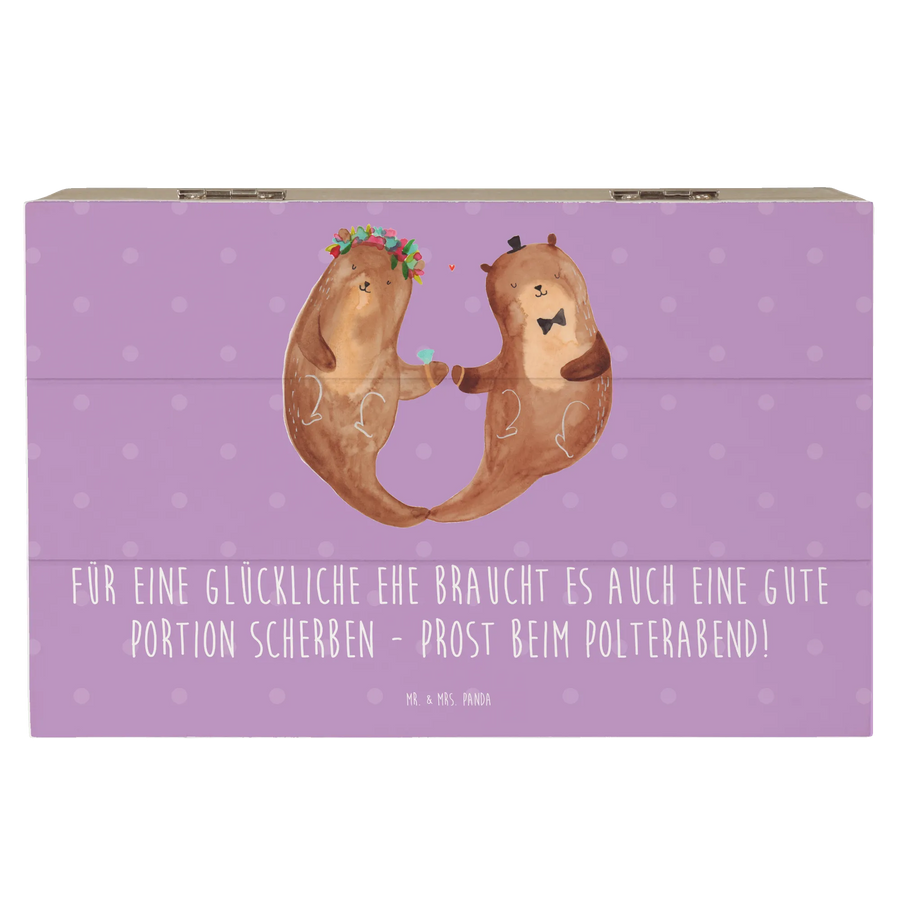 Die wunderschöne Holzkiste von Mr. & Mrs. Panda ist das perfekte Geschenk für alle, die sich auf den schönsten Tag ihres Lebens vorbereiten! Mit dem charmanten Motiv zum Polterabend und dem Spruch 'Für eine glückliche Ehe braucht es auch eine gute Portion Scherben - Prost beim Polterabend!' eignet sich diese Erinnerungskiste hervorragend als Aufbewahrung für die schönsten Schätze.