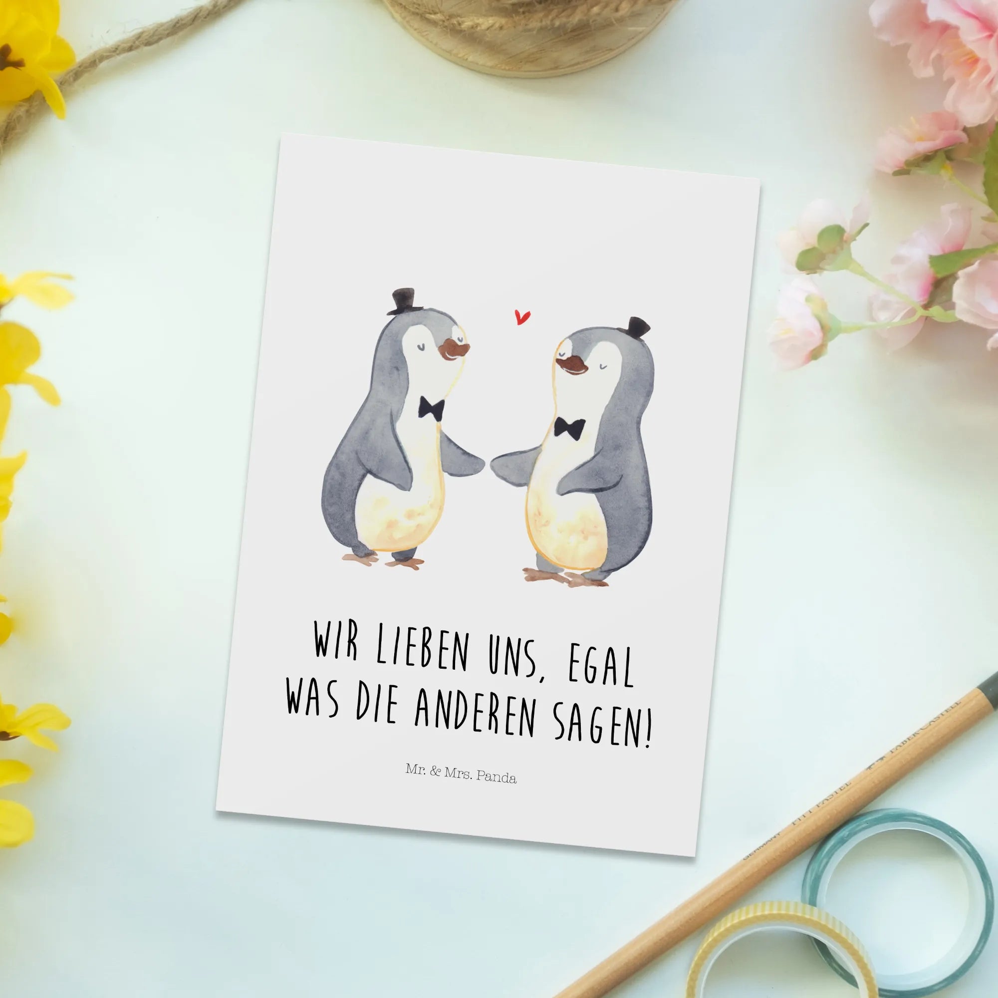 Pocztówka Pingwiny Duma gejów - z napisem
