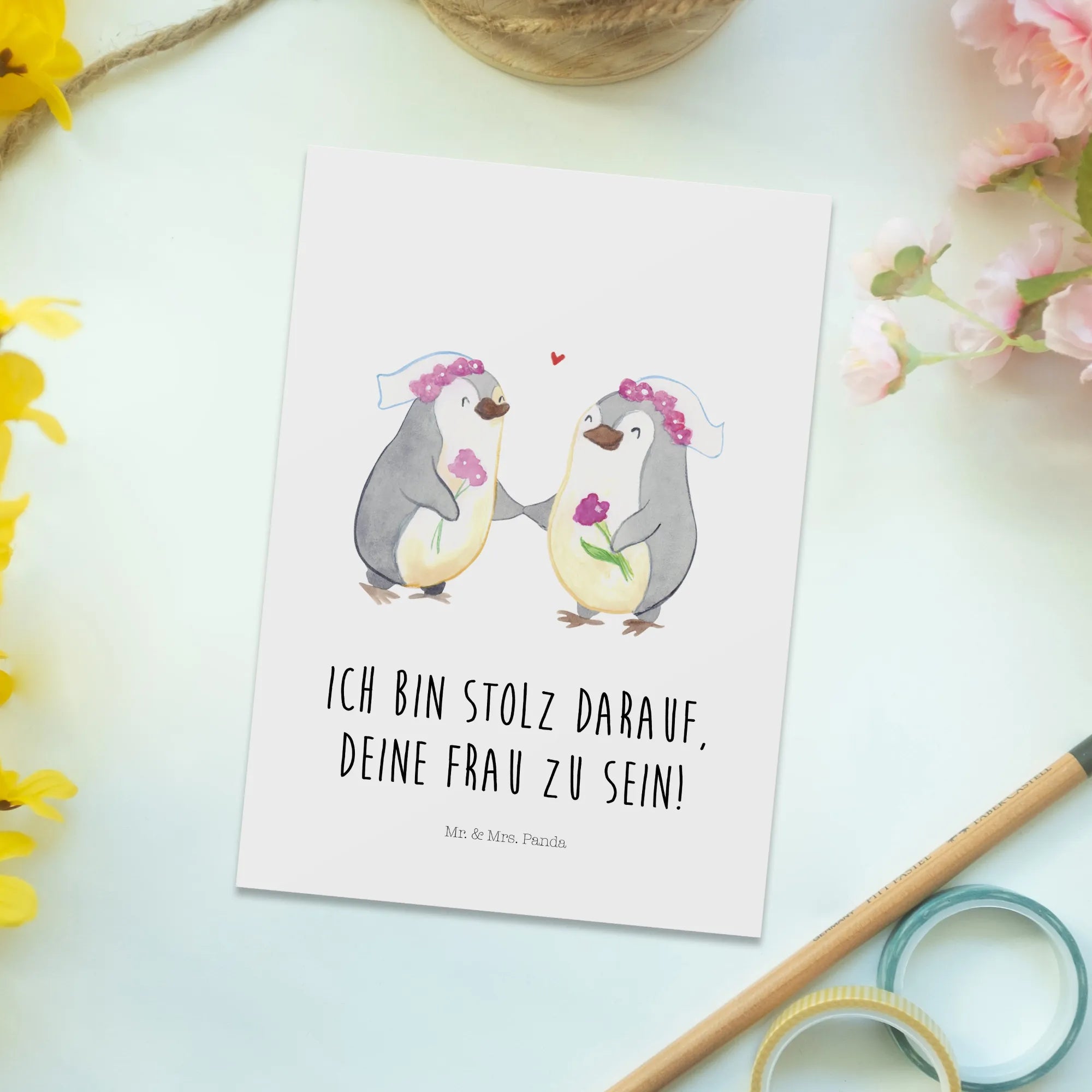 Pocztówka Pingwiny Lesbijska duma - z napisem