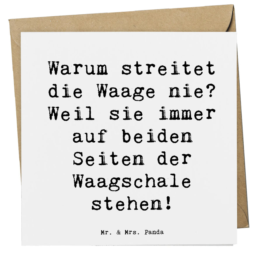 Mit einem charmanten Spruch "Warum streitet die Waage nie? Weil sie immer auf beiden Seiten der Waagschale stehen!" bringt diese Karte eine humorvolle Note in feierliche Anlässe. Egal ob Geburtstag, Hochzeit, Jubiläum oder einfach als liebevolle Geste, diese Karte ist ideal für individuelle Grüße und Glückwünsche.