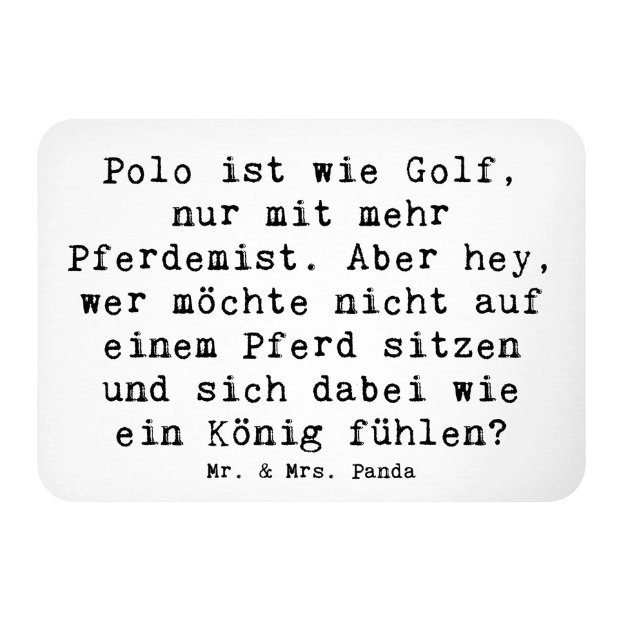 Entdecke den zauberhaften Kühlschrankmagneten von Mr. & Mrs. Panda, der nicht nur praktisch ist, sondern auch ein echtes Statement für jeden Polo-Fan! Mit dem charmanten Spruch "Polo ist wie Golf, nur mit mehr Pferdemist. Aber hey, wer möchte nicht auf einem Pferd sitzen und sich dabei wie ein König fühlen?" bringt dieser Magnet Farbe und Freude in deine Küche.