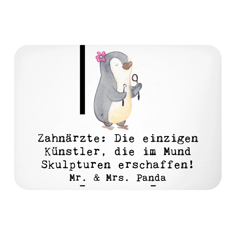 Der Kühlschrankmagnet "Zahnarzt" von Mr. & Mrs. Panda ist das perfekte Geschenk für alle, die sich mit Leidenschaft dem Beruf des Zahnarztes widmen. Mit dem humorvollen Slogan "Zahnärzte: Die einzigen Künstler, die im Mund Skulpturen erschaffen!" zaubert dieser Magnet jedem Lächeln ein Schmunzeln ins Gesicht.