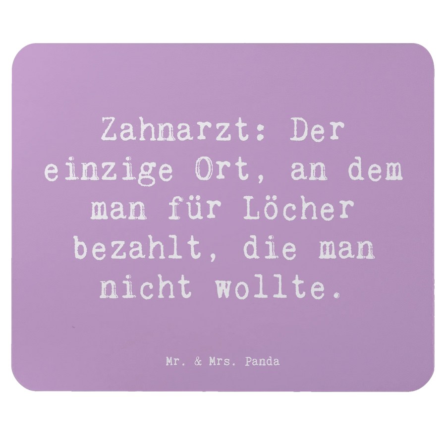 Das wunderschöne Mauspad "Zahnarzt" von Mr. & Mrs. Panda ist nicht nur ein praktisches Computerzubehör, sondern auch ein echter Hingucker für dein Büro oder Homeoffice! Mit einem humorvollen Spruch, "Zahnarzt: Der einzige Ort, an dem man für Löcher bezahlt, die man nicht wollte", sorgt es für ein Schmunzeln bei jedem Arbeitstag.