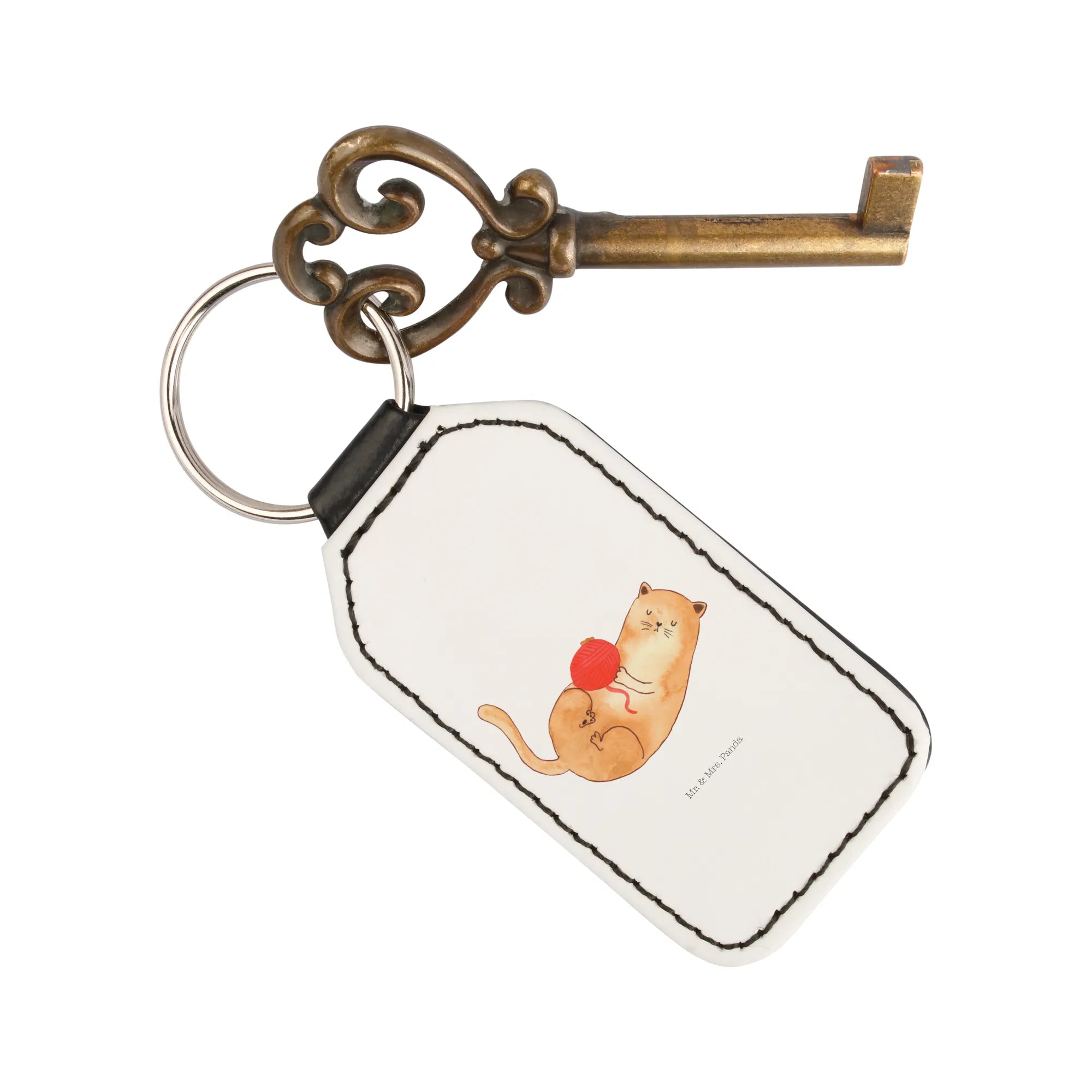 Prostokątny brelok kot wełna - Pastelowy żółty