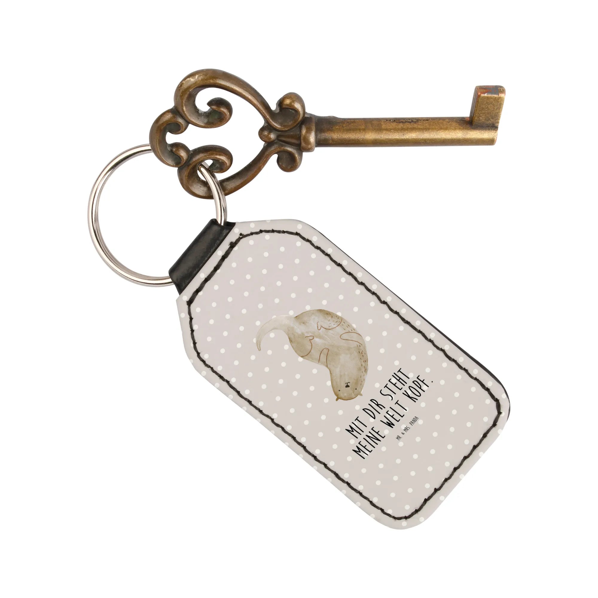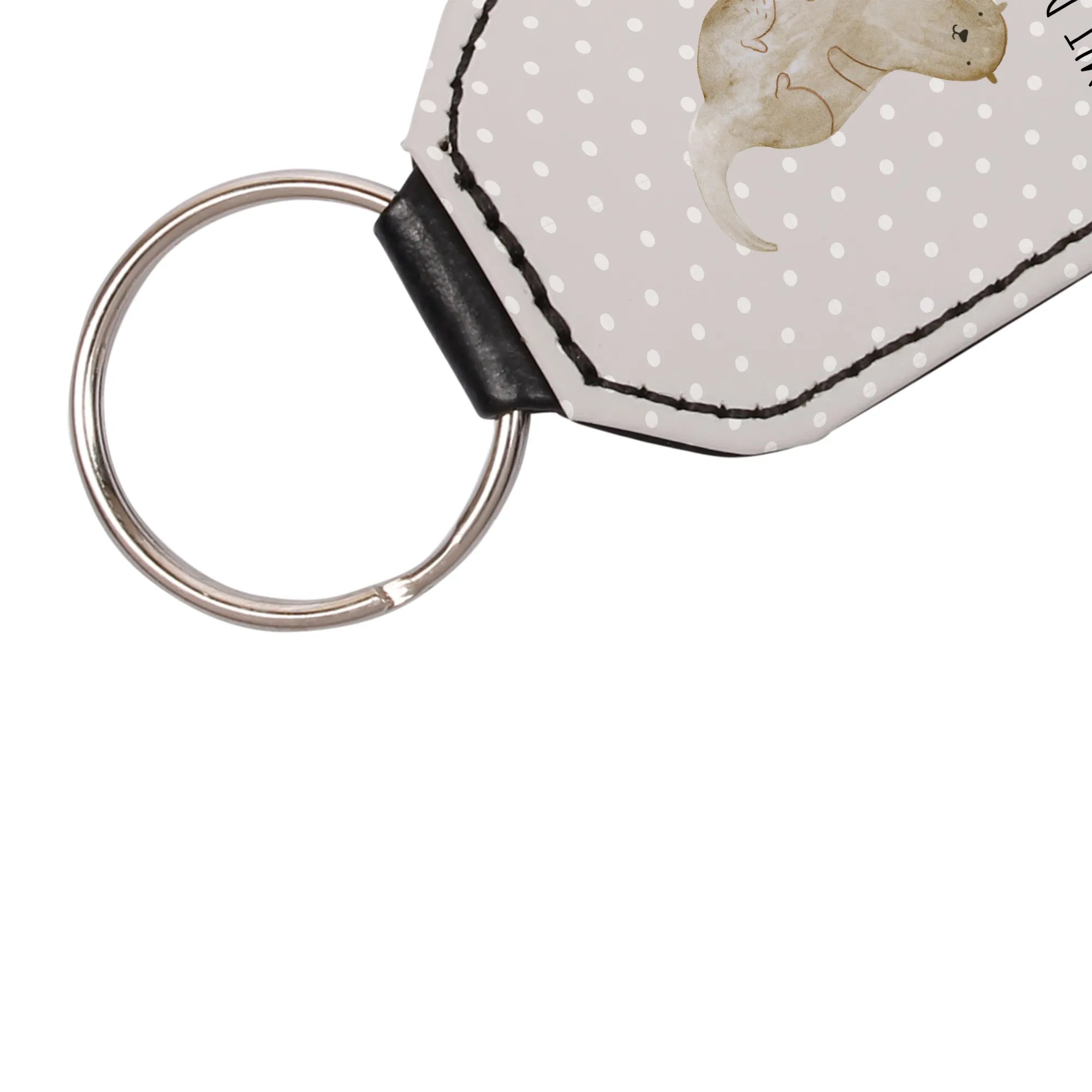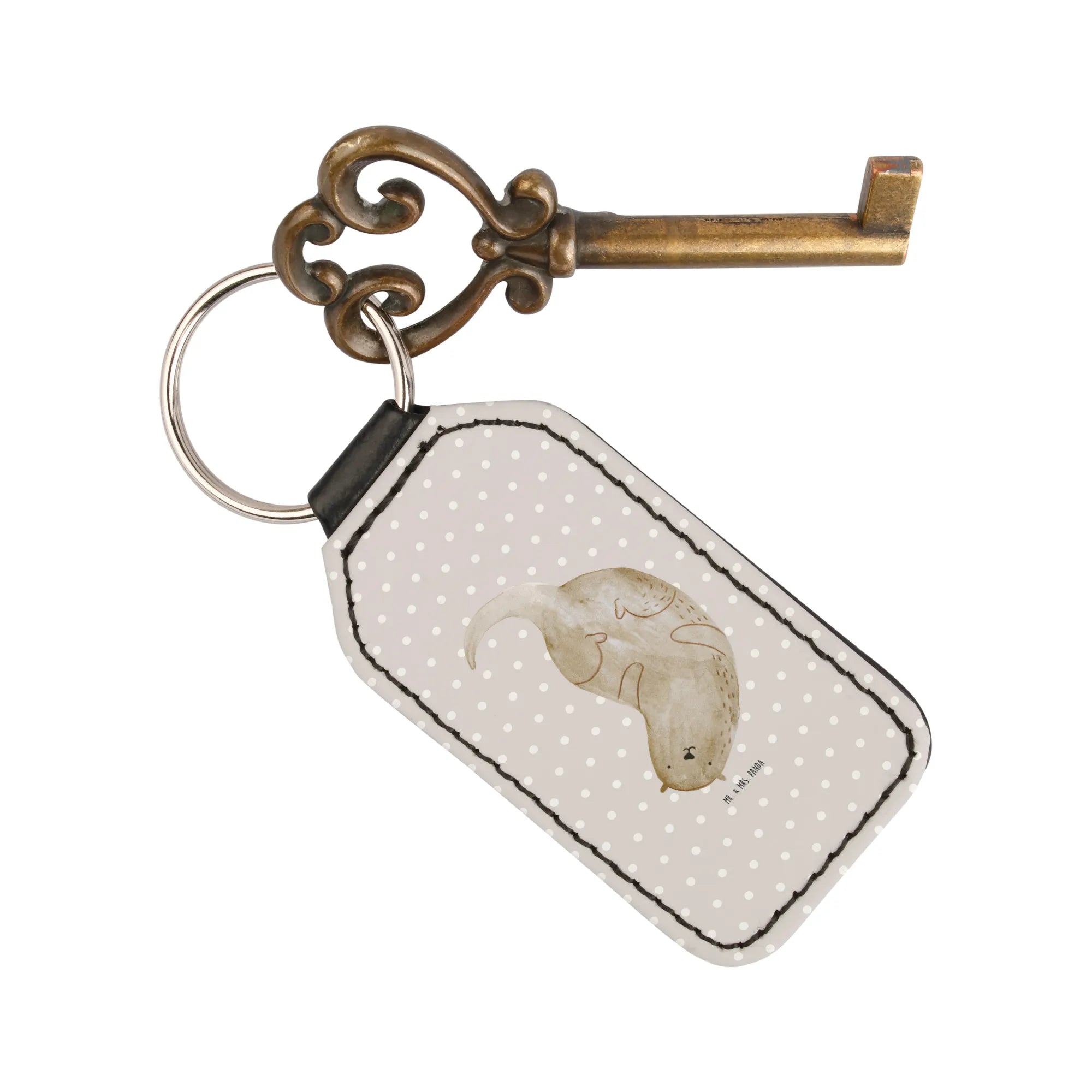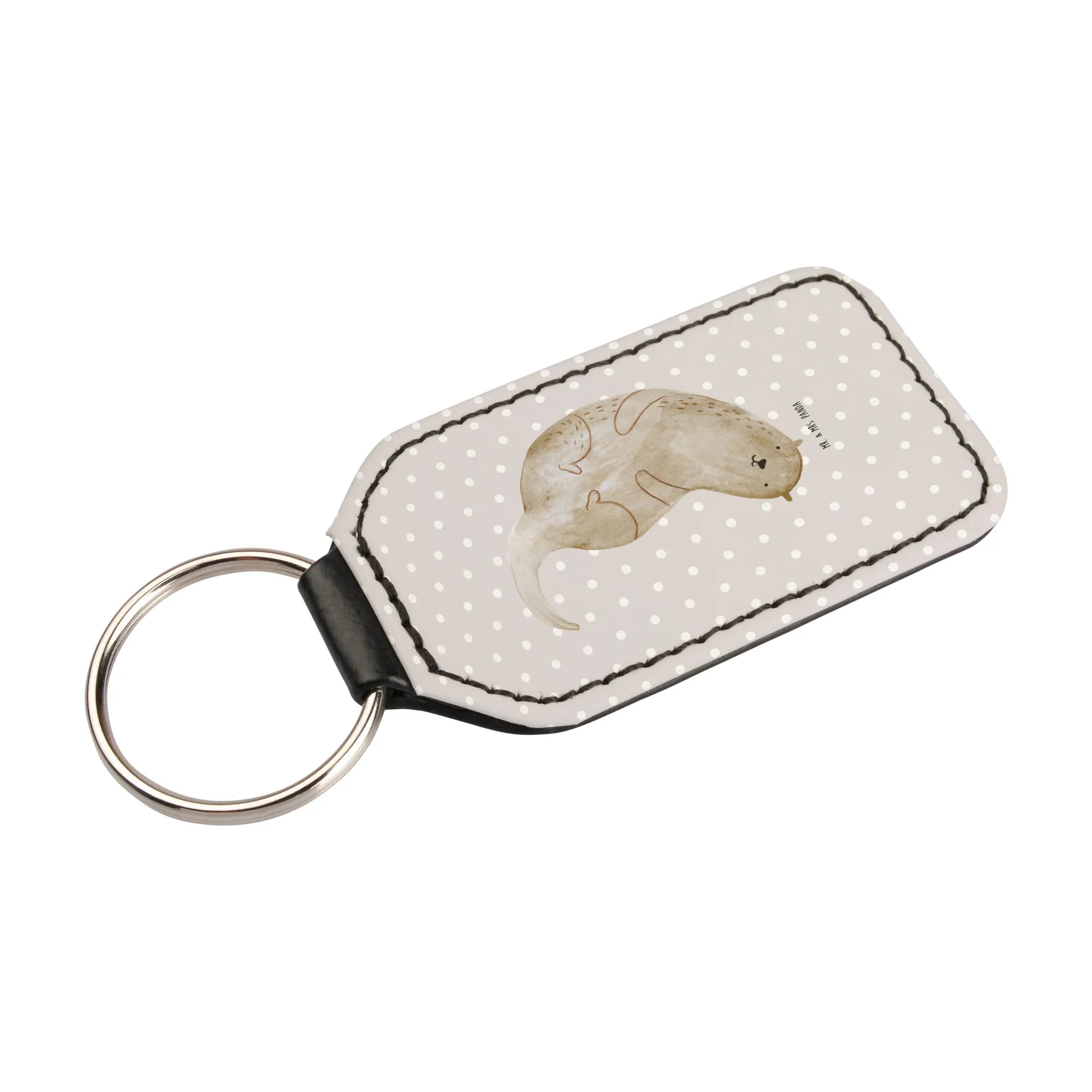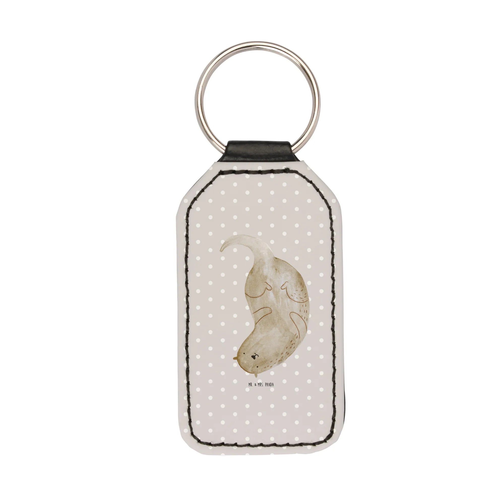 Prostokątny brelok wydra Do góry nogami - z napisem - Pastelowy szary