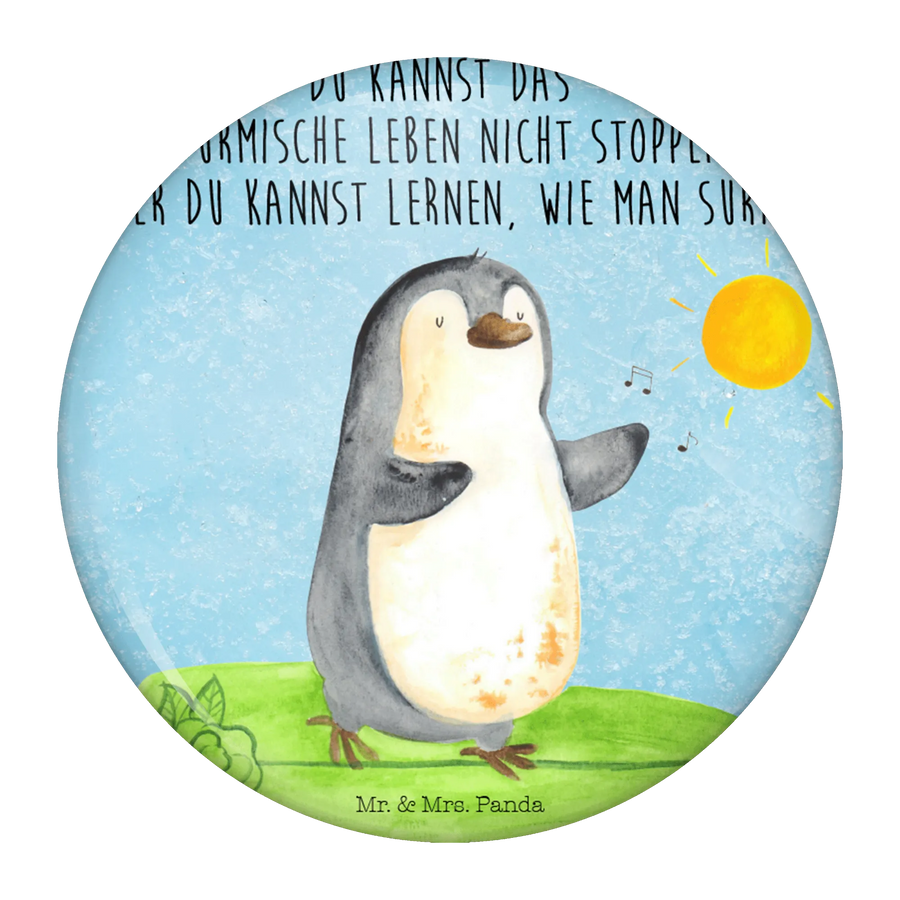 50mm Guzik Pingwin surfista - z napisem - lodowoniebieski