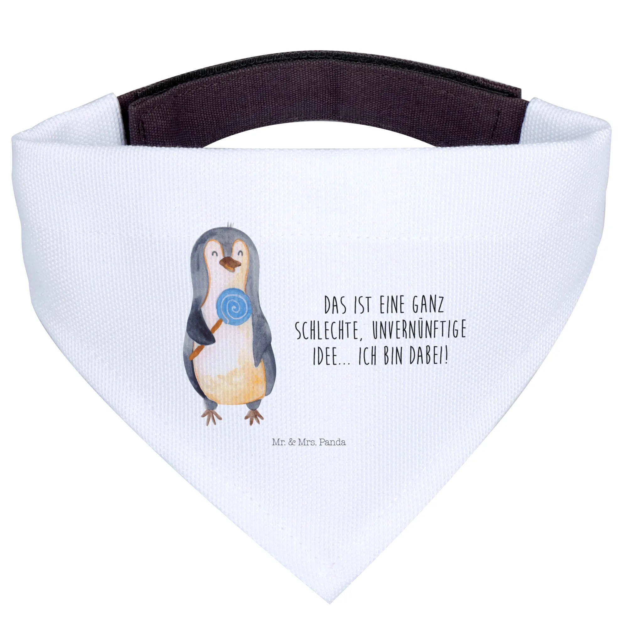 Chusta na szyję dla psa L pingwin lizak - Bandana dla psów M - z napisem - biały
