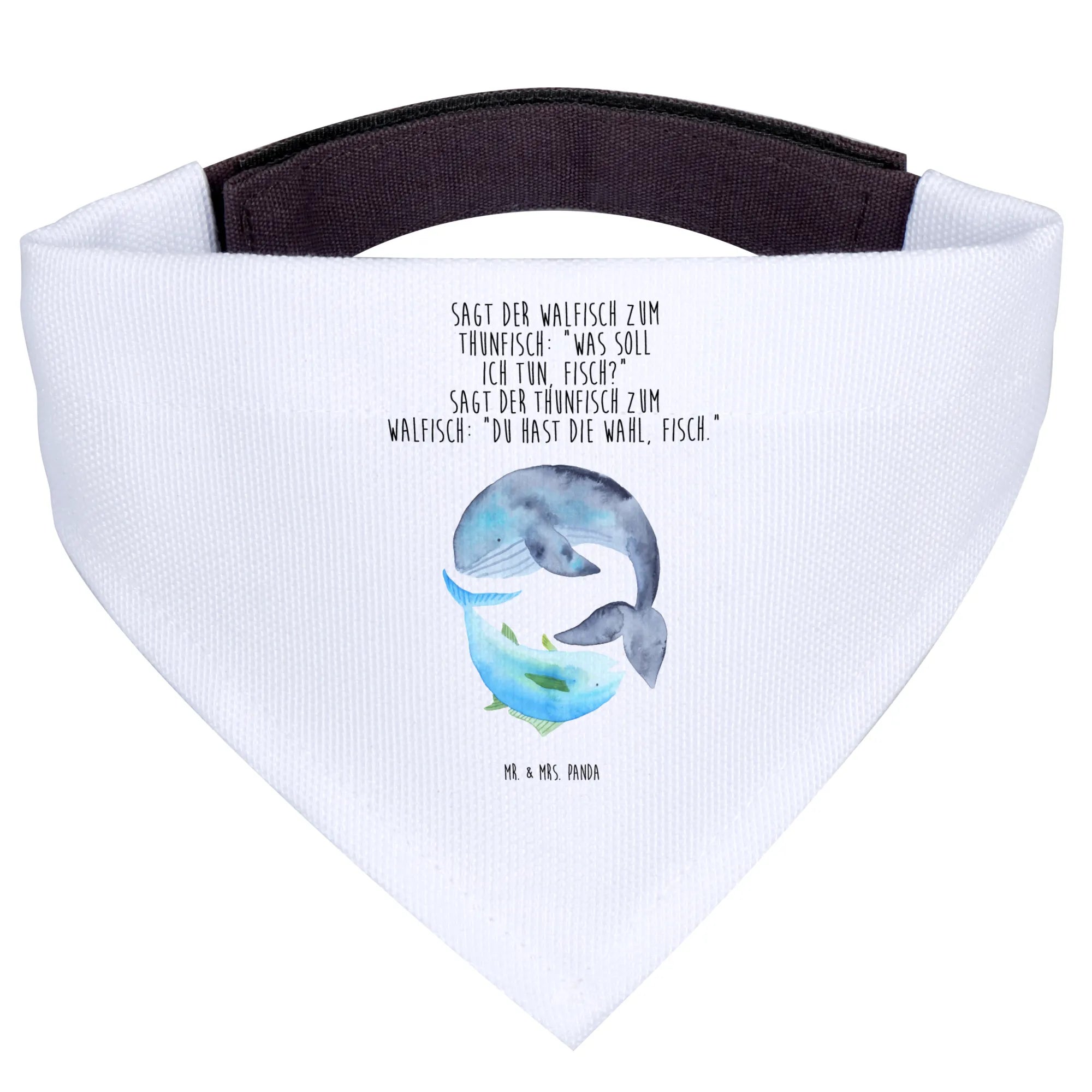 Chusta na szyję dla psa L wieloryb tuńczyk - Psia chusta S - z napisem - Biały