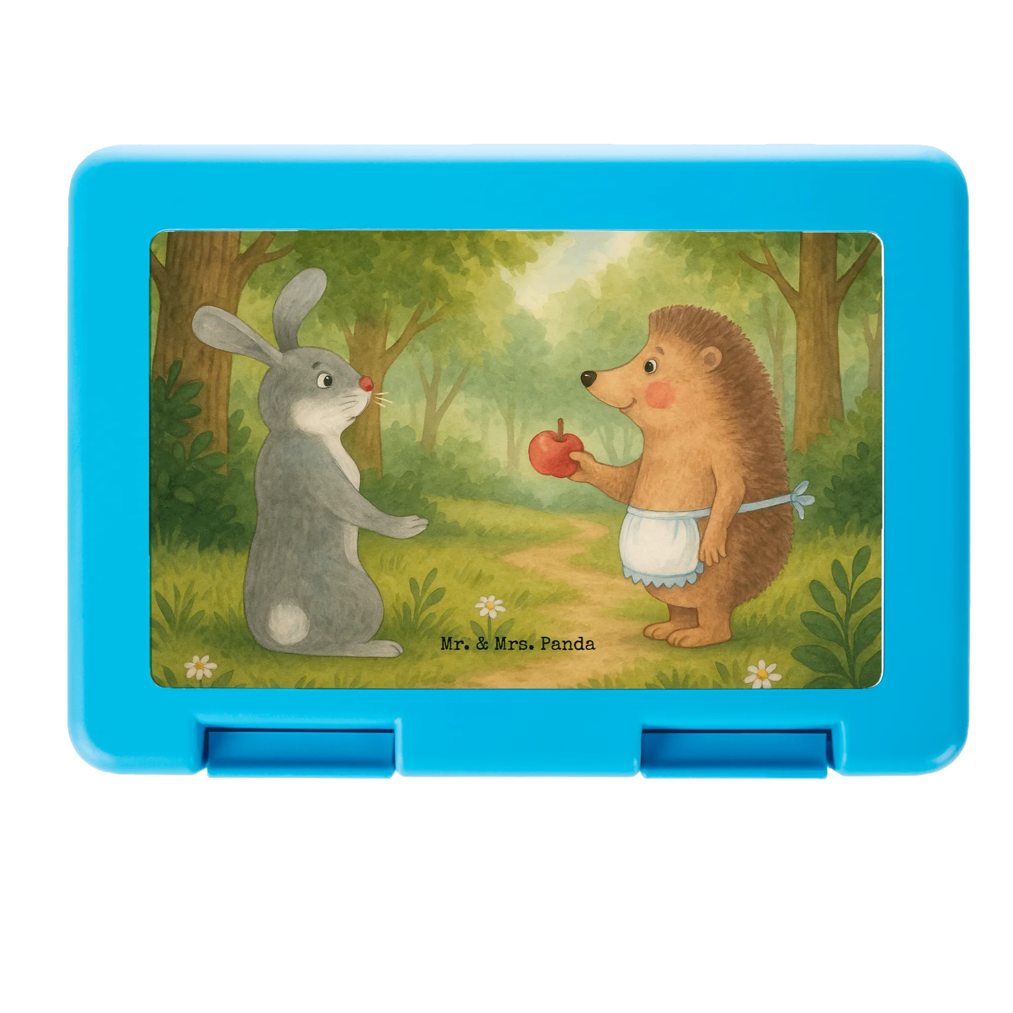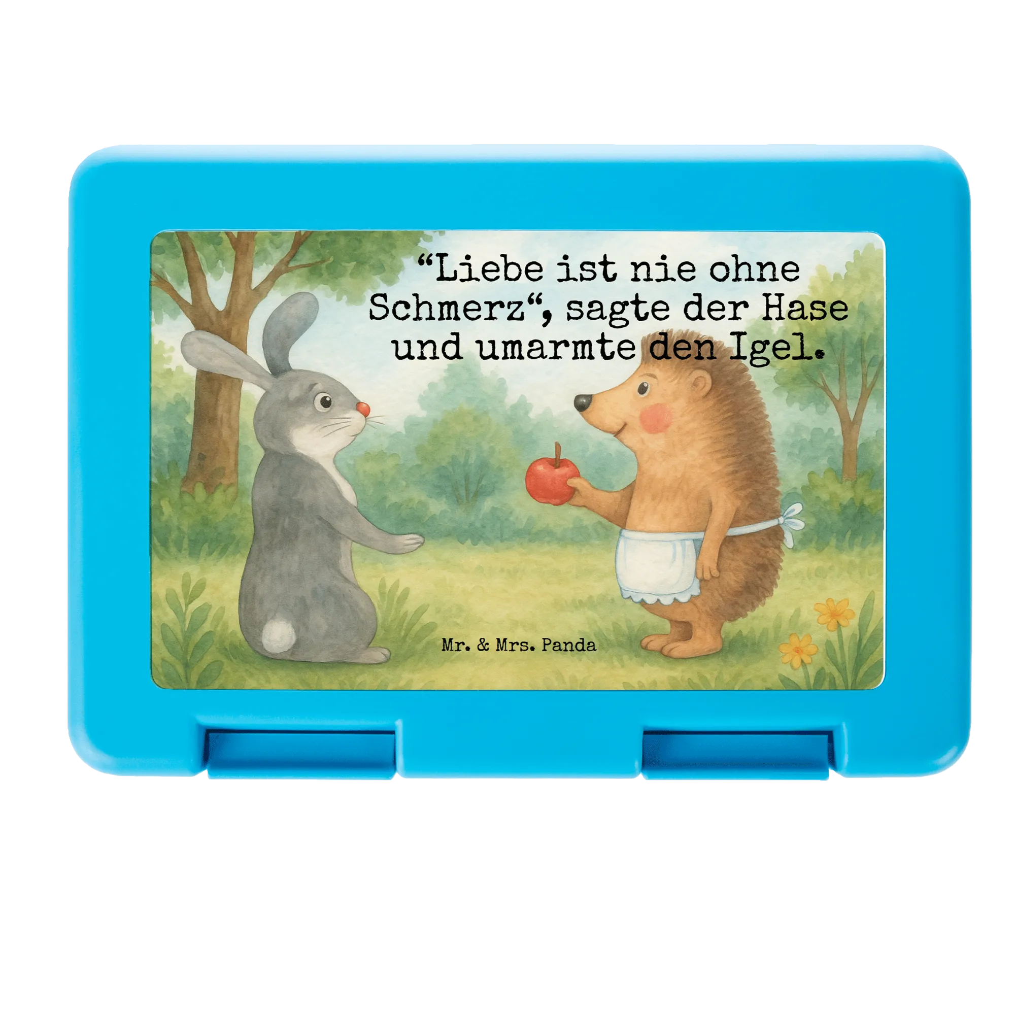 Diese liebevoll gestaltete Brotdose aus der Small World Kollektion vereint niedliches Design und Alltagstauglichkeit. Das quer vollflächige Motiv zeigt einen Hasen und einen Igel, begleitet vom Spruch: „„Liebe ist nie ohne Schmerz“, sagte der Hase und umarmte den Igel.“ – ein kleiner, berührender Spruch für alle, die Gefühle mit Humor und Wärme zeigen möchten.