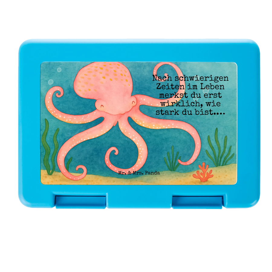 Bring ein Stück Meer in die Pause! Die Brotdose mit dem fröhlichen roten Tintenfisch macht jede Mittagspause bunter und sorgt für gute Laune. Der Tintenfisch winkt dir mit seinen vielen Armen zu und begleitet dich durch Schulstunden, Arbeitspausen oder beim Picknick. Der liebevoll platzierte Spruch „Nach schwierigen Zeiten im Leben merkst du erst wirklich, wie stark du bist.…“ schenkt Mut und Wärme – ein kleines Geschenk fürs Herz.