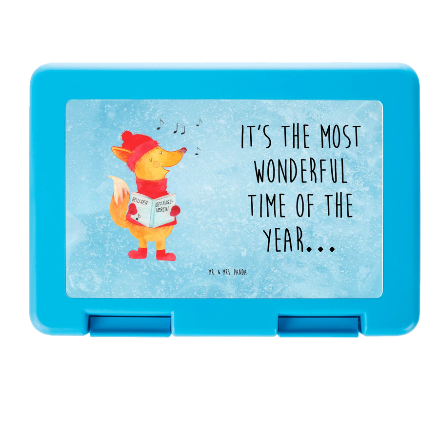 Pudełko na kanapki lis Śpiewak - z napisem - Eisblau