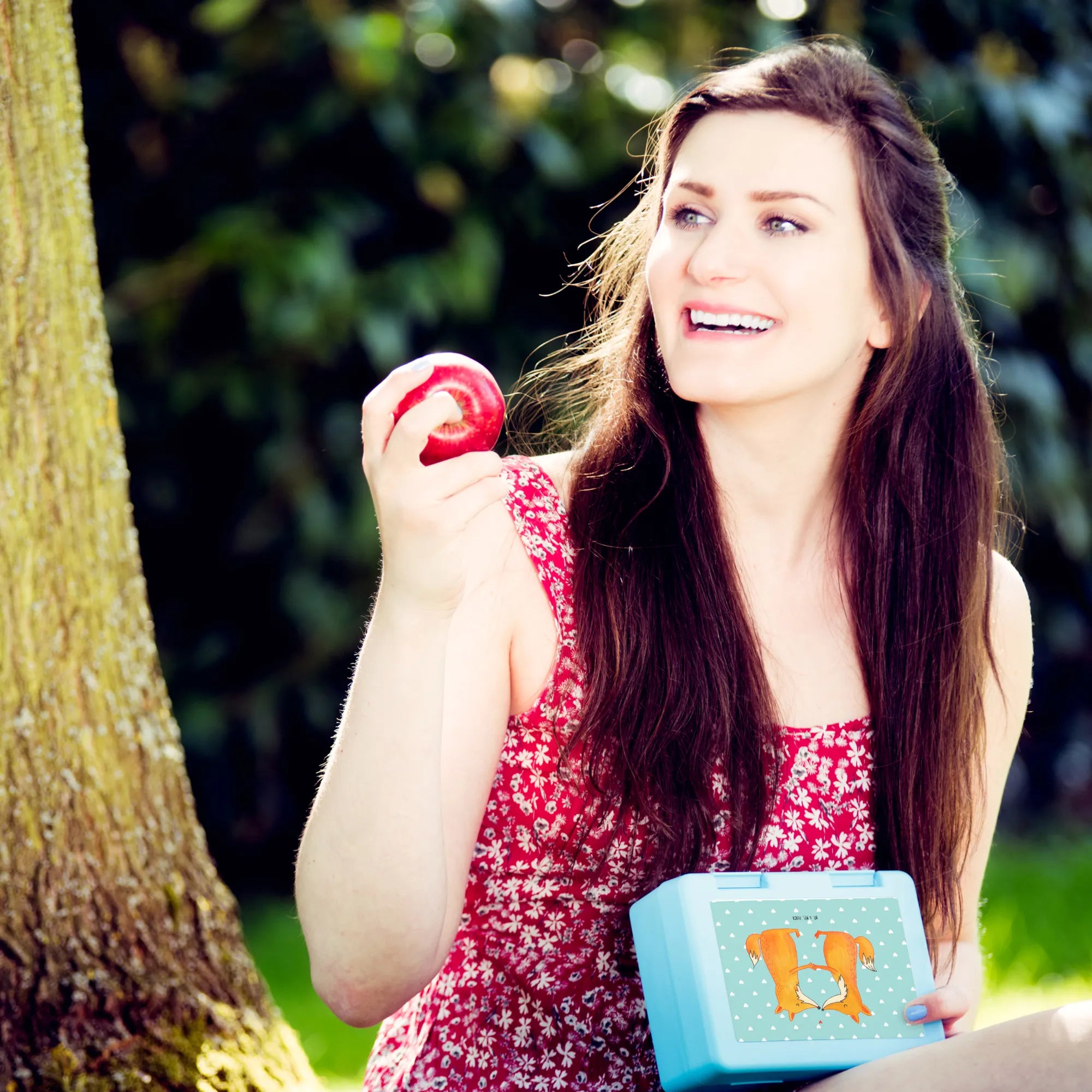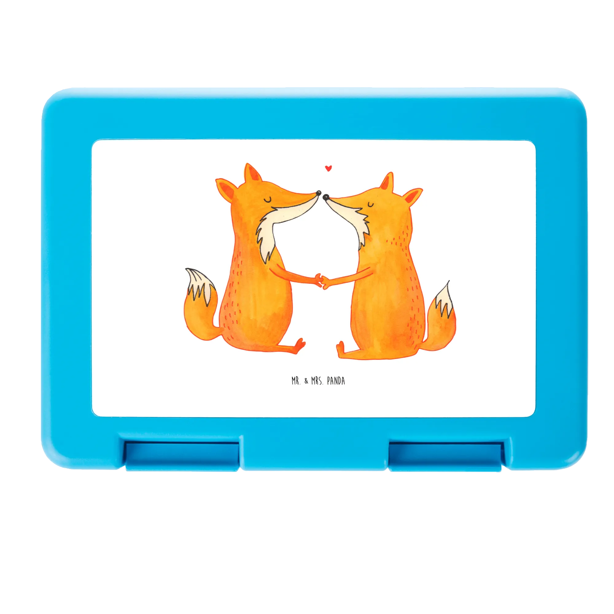 Pudełko na kanapki lisy miłość - z napisem - pastelowy turkus