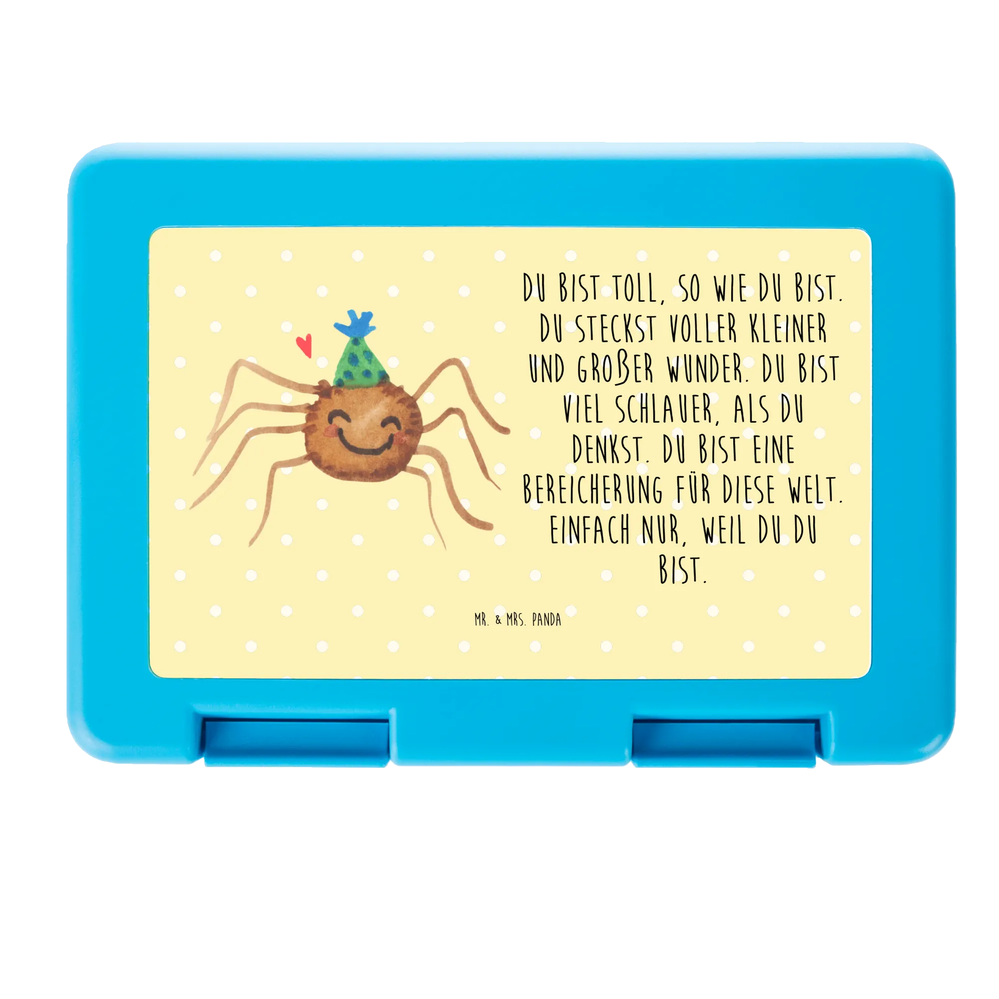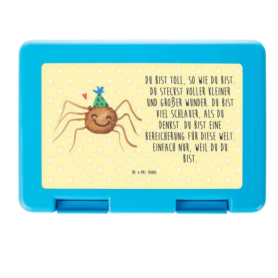 Zur Einschulung, zum Geburtstag, Weihnachten oder einfach als kleines Mitbringsel: Die Brotdose „Spinne Agathe Party“ ist ein zauberhaftes Geschenk für Kinder, Patenkinder, Freunde oder Kollegen, die Freude am liebevollen Design haben.