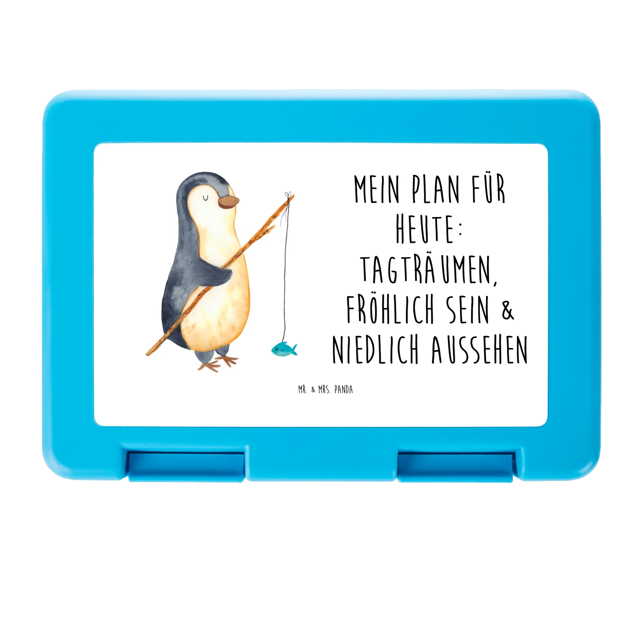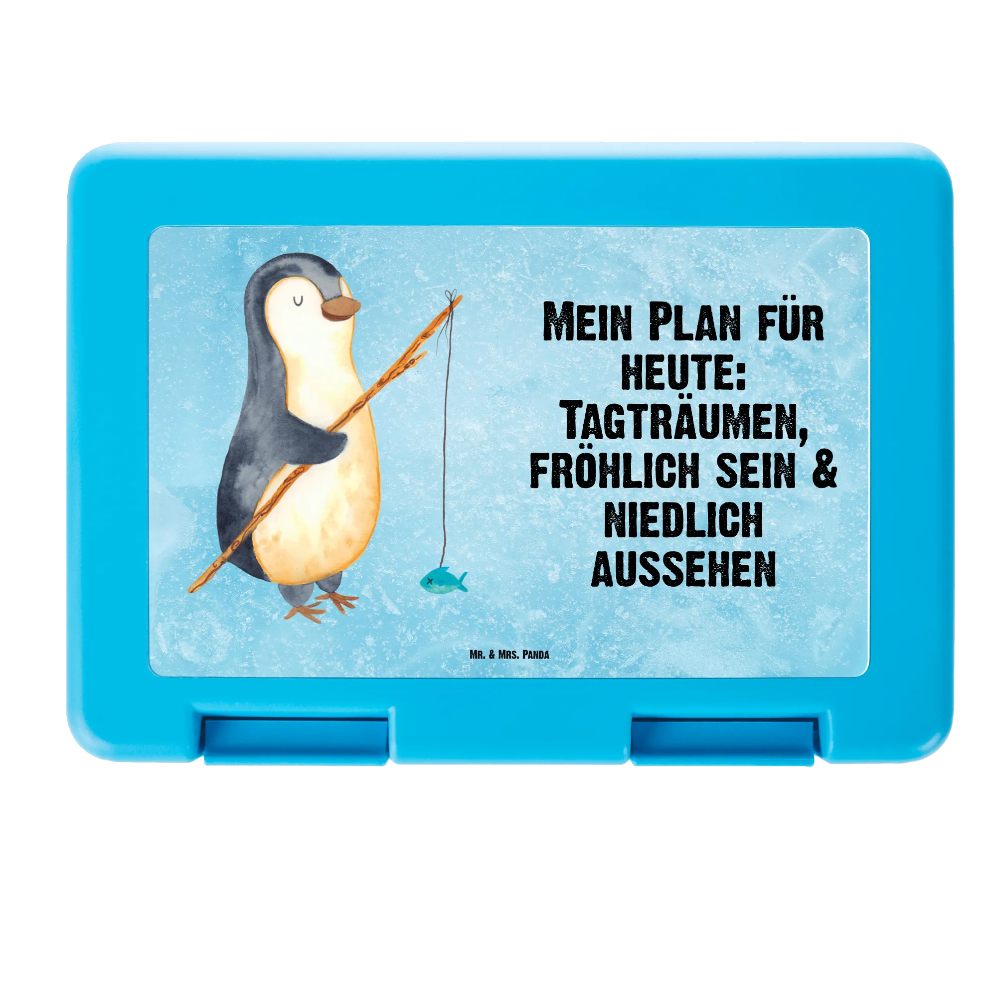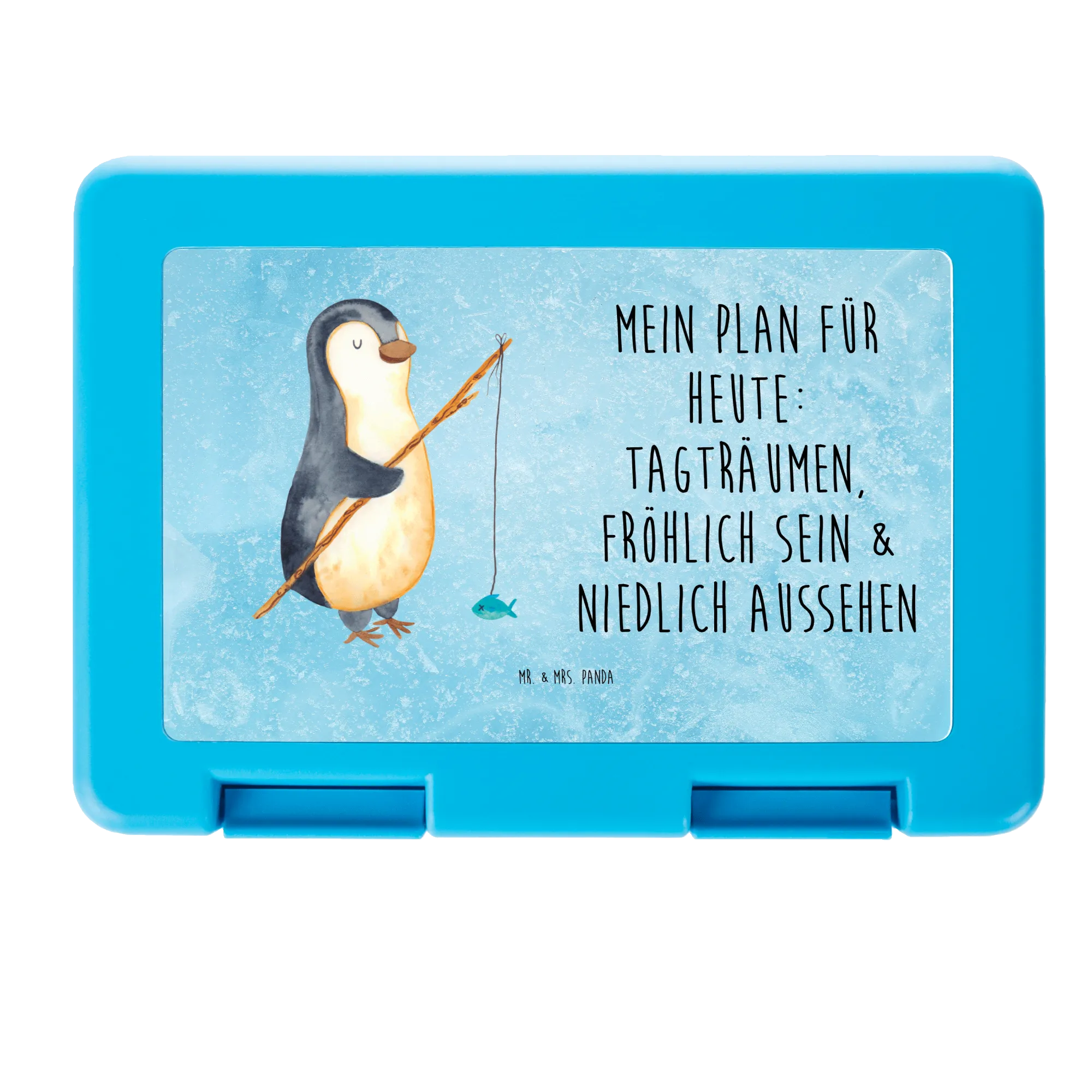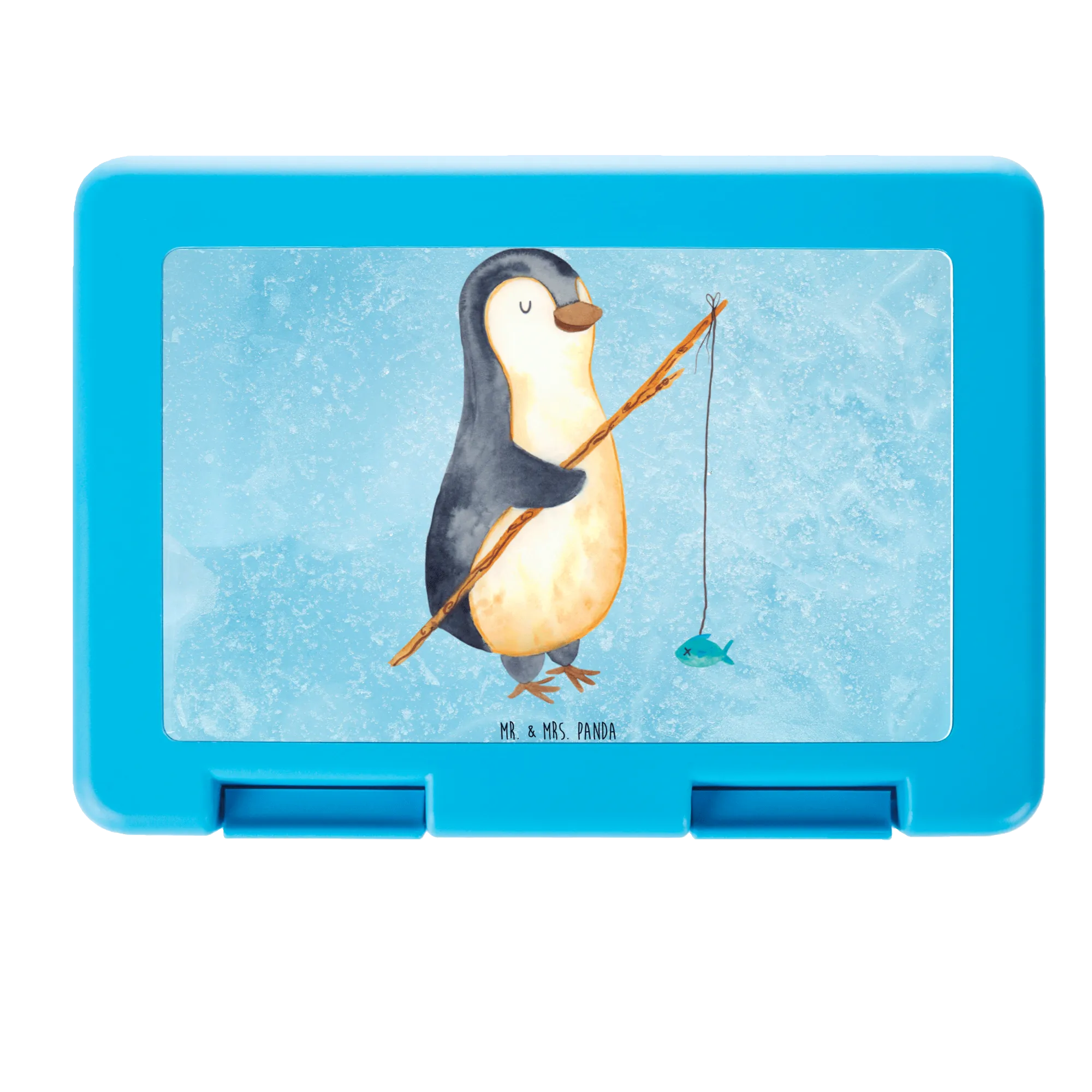 Pudełko na kanapki Pingwin Wędkarz - z napisem - Eisblau