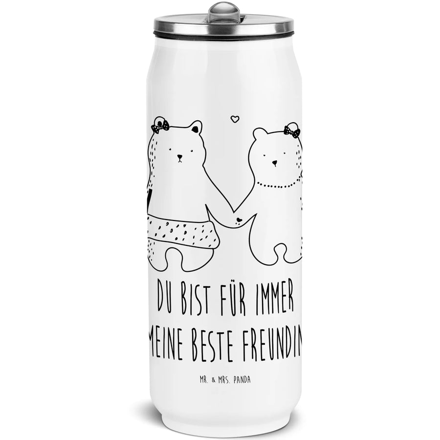 Die wunderschöne Getränkedose Trinkflasche mit dem süßen Motiv "Bär Freundin" von Mr. & Mrs. Panda ist das perfekte Geschenk für jeden Anlass! Sie zeigt zwei Bärenmädchen, die sich an den Händen halten, und symbolisiert so die wertvolle Freundschaft, die wir zu unseren besten Freunden haben.