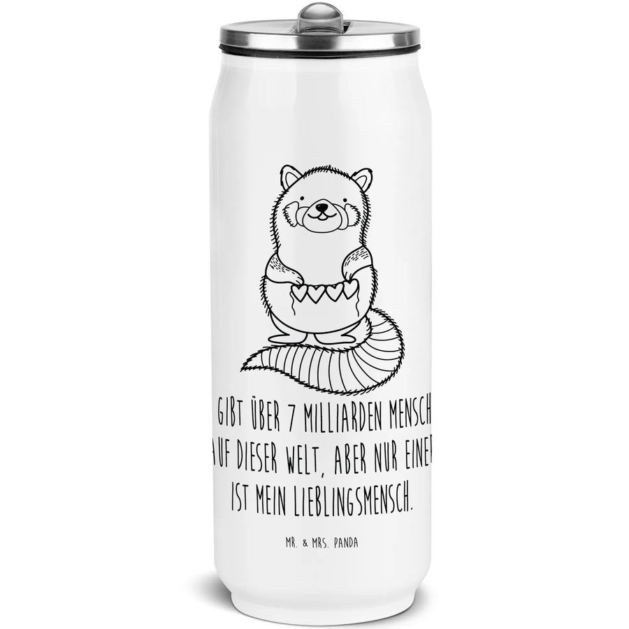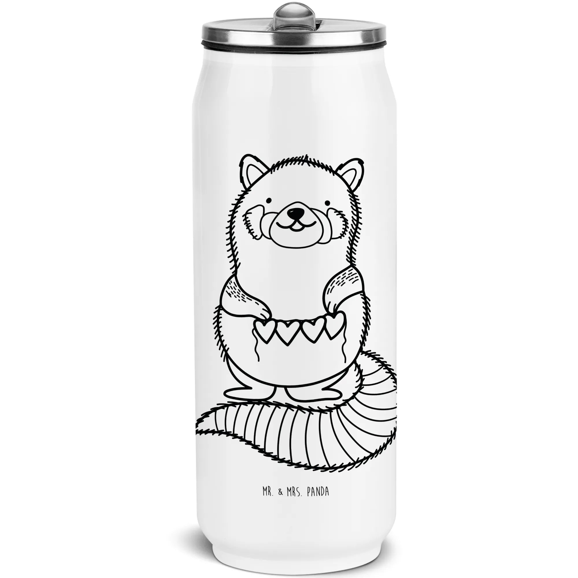 Die wunderschöne und edle Edelstahl Getränkedosen Trinkflasche von Mr. & Mrs. Panda ist nicht nur ein praktischer Begleiter für deinen Alltag, sondern auch ein ganz besonderes Geschenk für deine Liebsten! Mit einem bunten, liebevoll handgezeichneten Motiv des roten Pandas, der eine Herzgirlande hält, zaubert diese Flasche ein Lächeln auf jedes Gesicht.