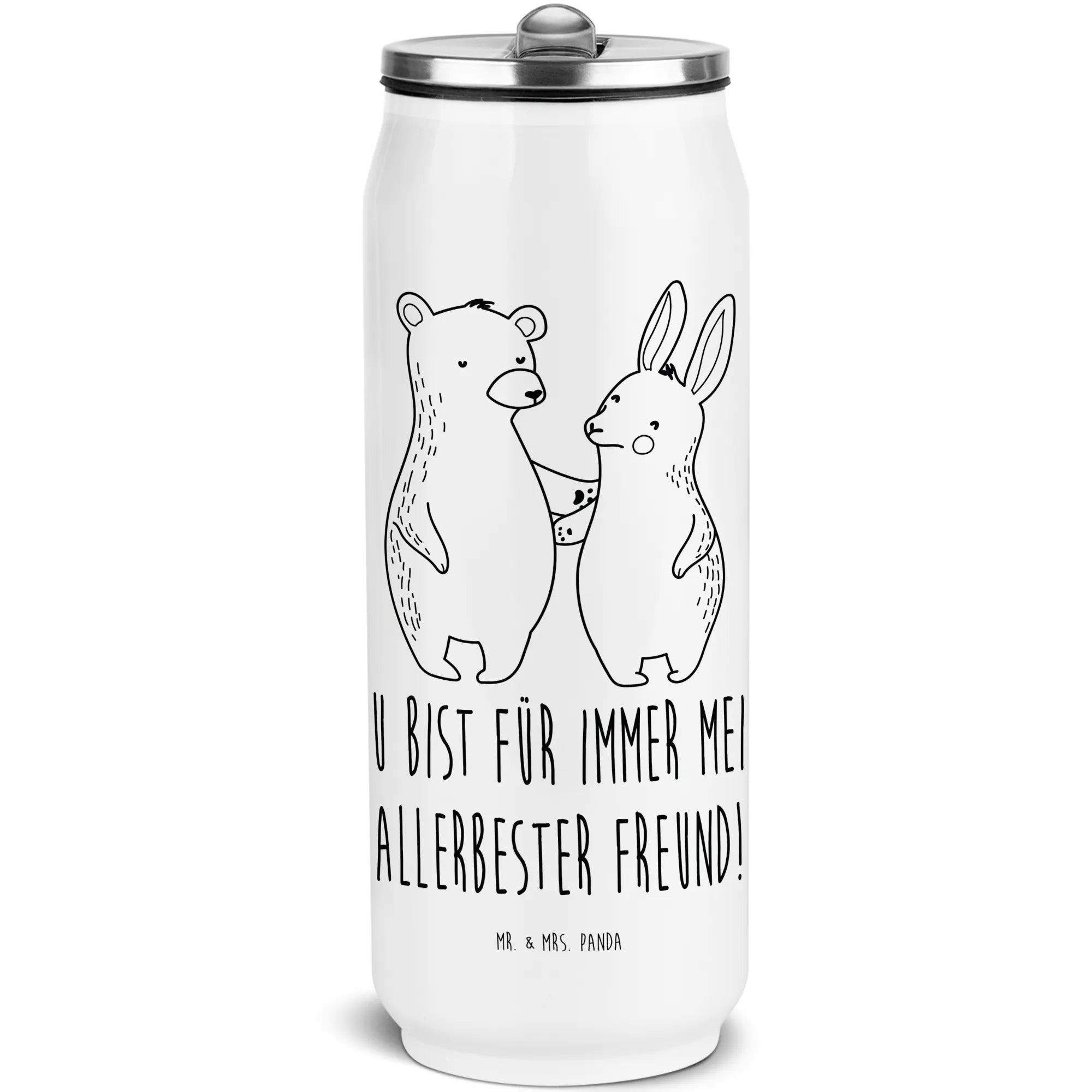 Der liebevoll gestaltete Aufdruck zeigt die süße Umarmung zwischen einem Bär und einem Hasen, die unendliche Freundschaft und Zuneigung symbolisieren. Die Flasche hat ein Füllvolumen von 420 ml und ist somit ideal für heiße oder kalte Getränke, die dir während deinem Alltag oder bei Abenteuern in der Natur Freude bereiten.