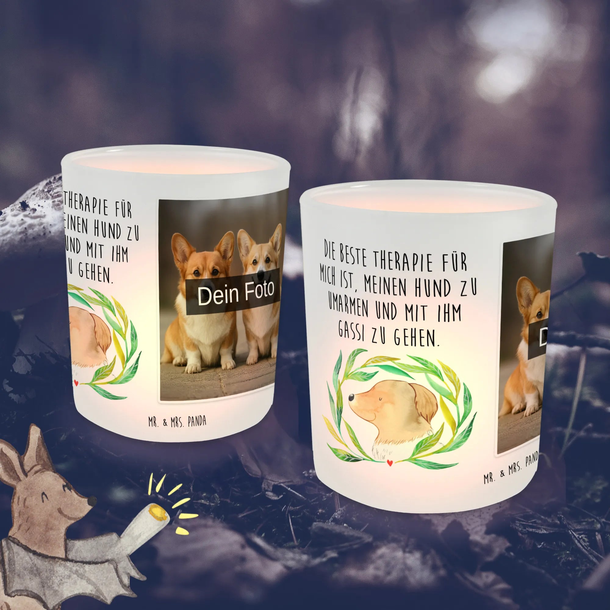 Personalisiertes Foto Windlicht Hund Blumen – Mr. & Mrs. Panda