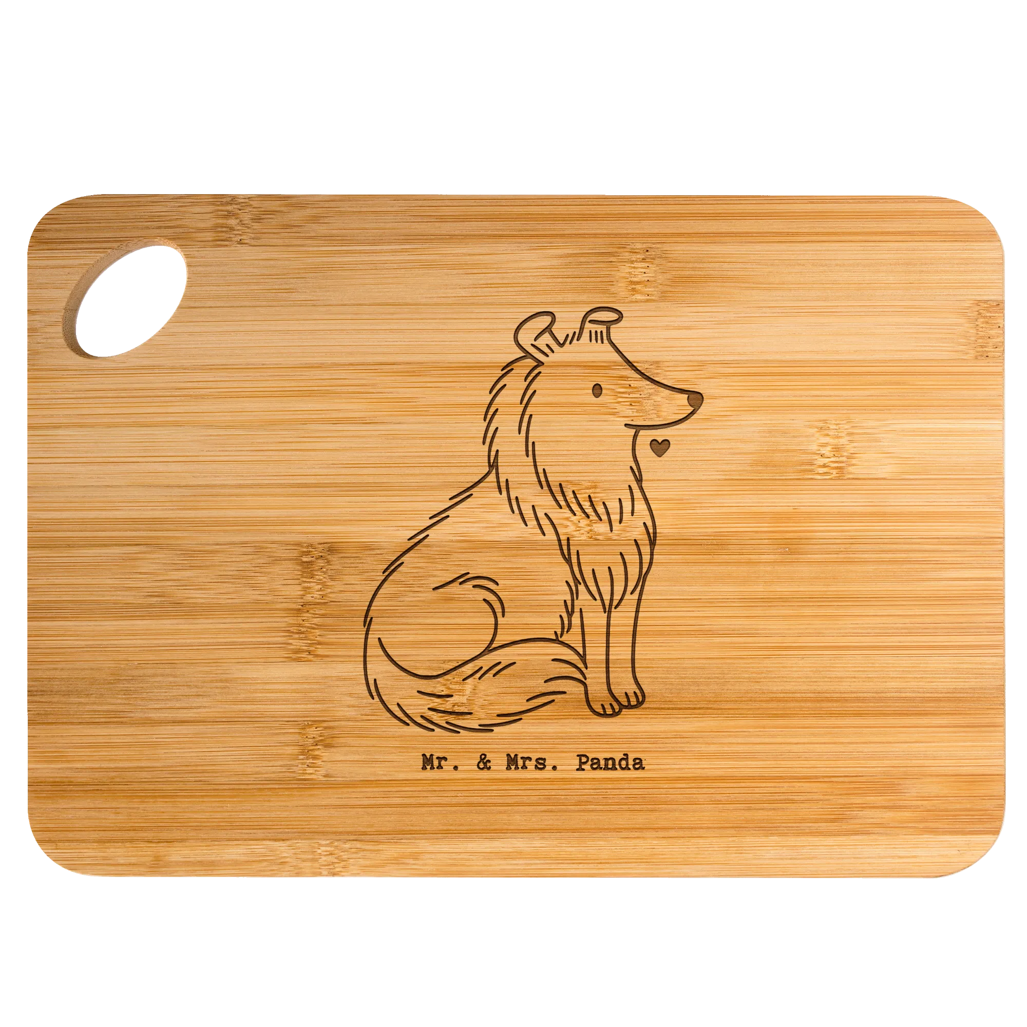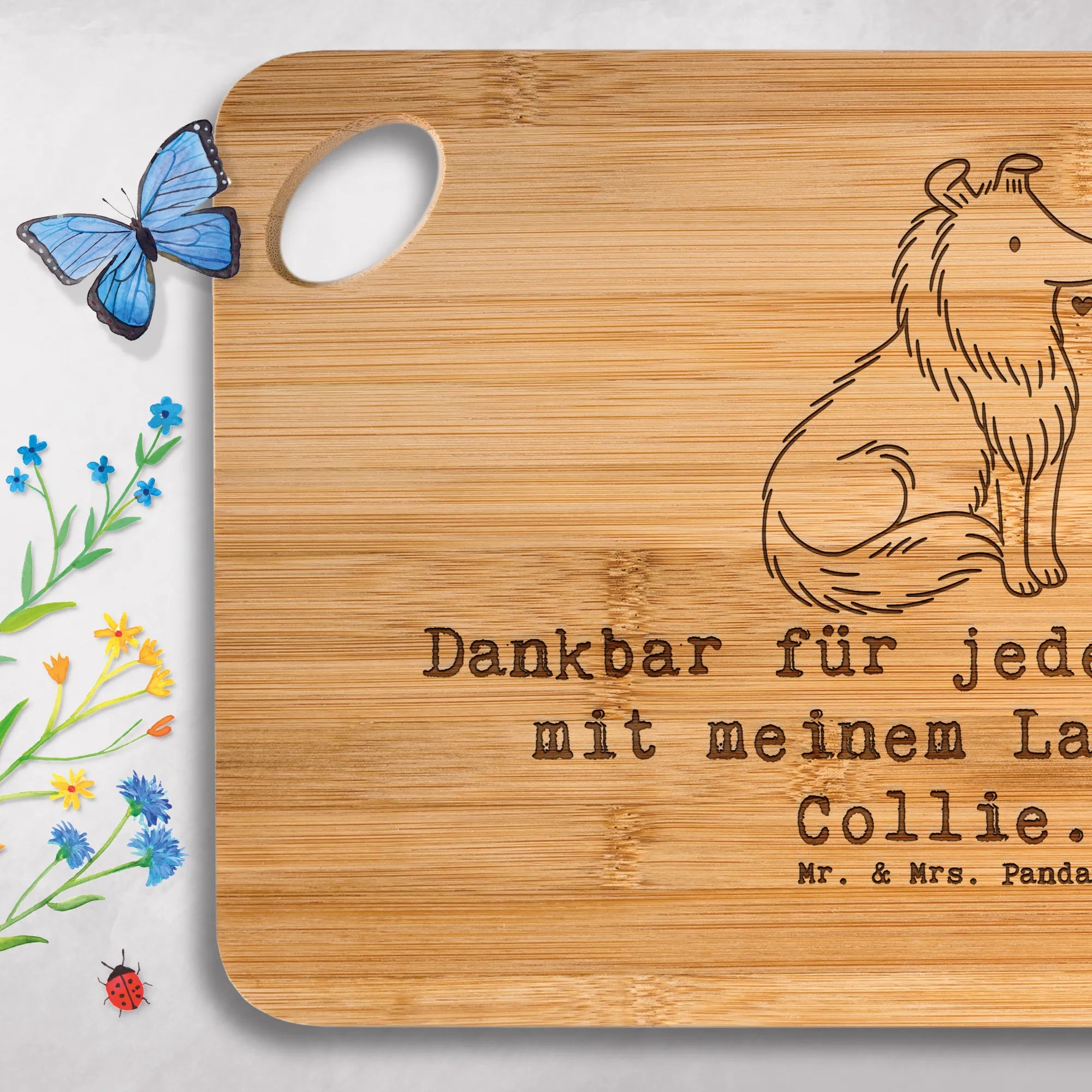 Bambus - deska do krojenia długowłosy collie Chwila - z napisem