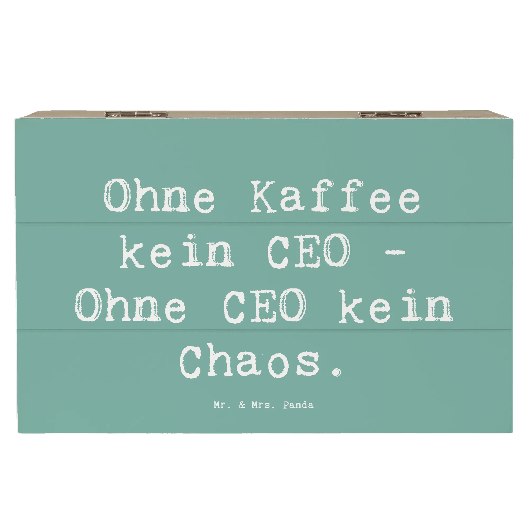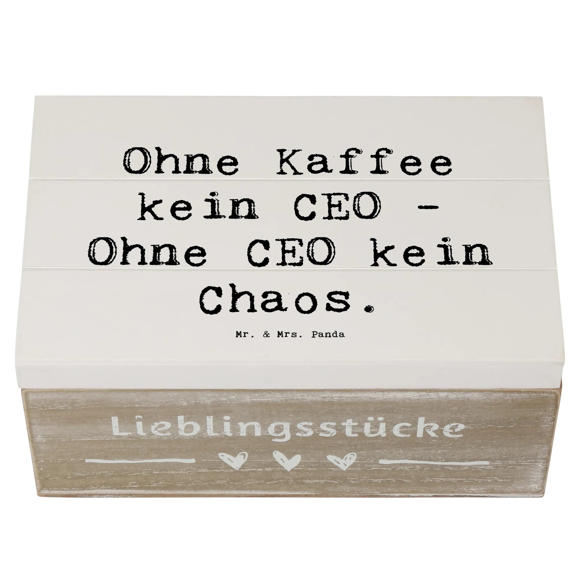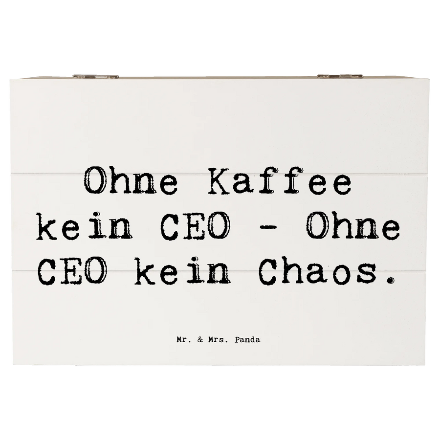 Die wunderschöne Holzkiste von Mr. & Mrs. Panda ist der perfekte Begleiter für jeden CEO und eine wunderbare Möglichkeit, besondere Erinnerungen zu bewahren. Bedruckt mit dem humorvollen Spruch "Ohne Kaffee kein CEO - Ohne CEO kein Chaos" bringt diese Kiste nicht nur ein Lächeln auf die Lippen, sondern auch eine reizvolle Note in jedes Büro oder Zuhause.