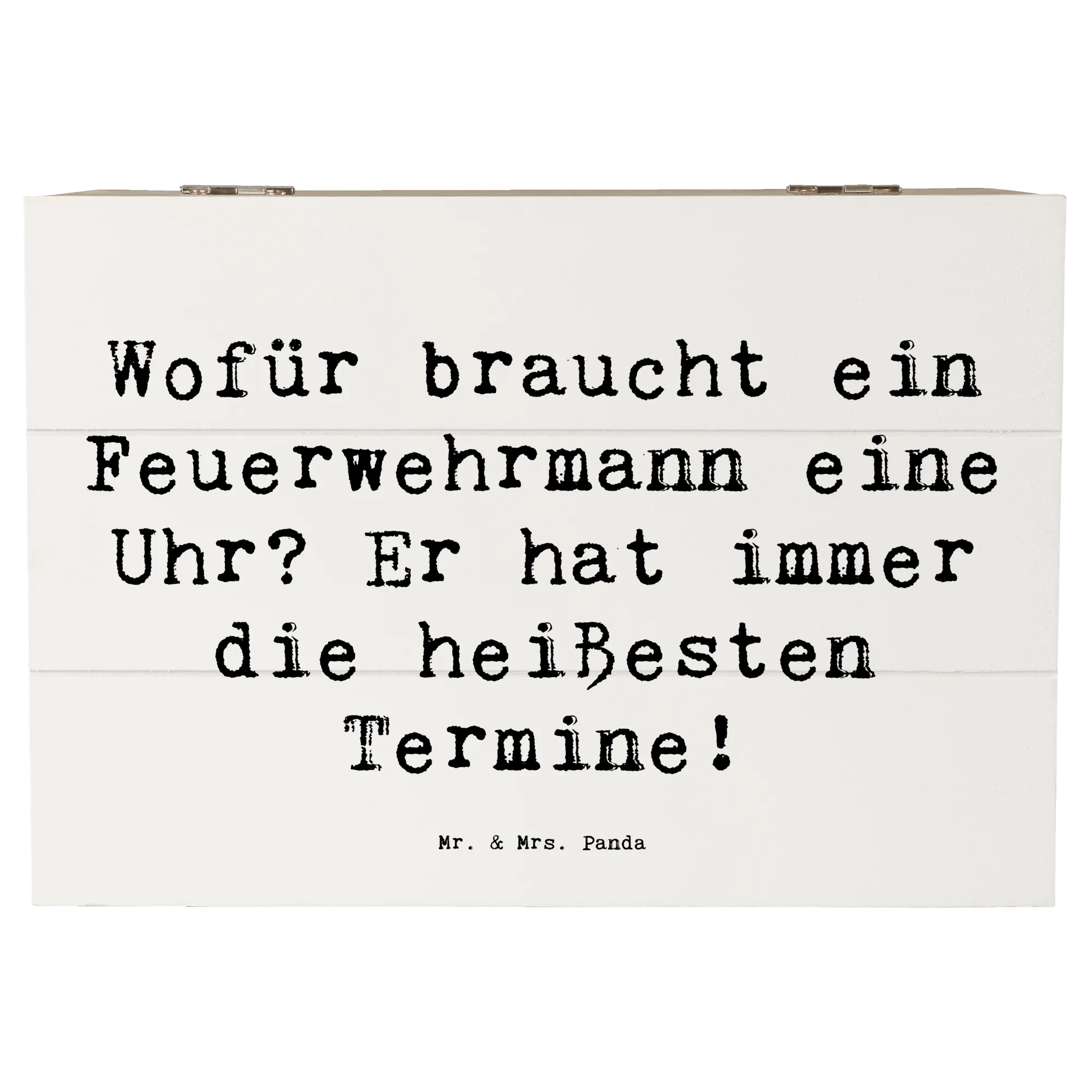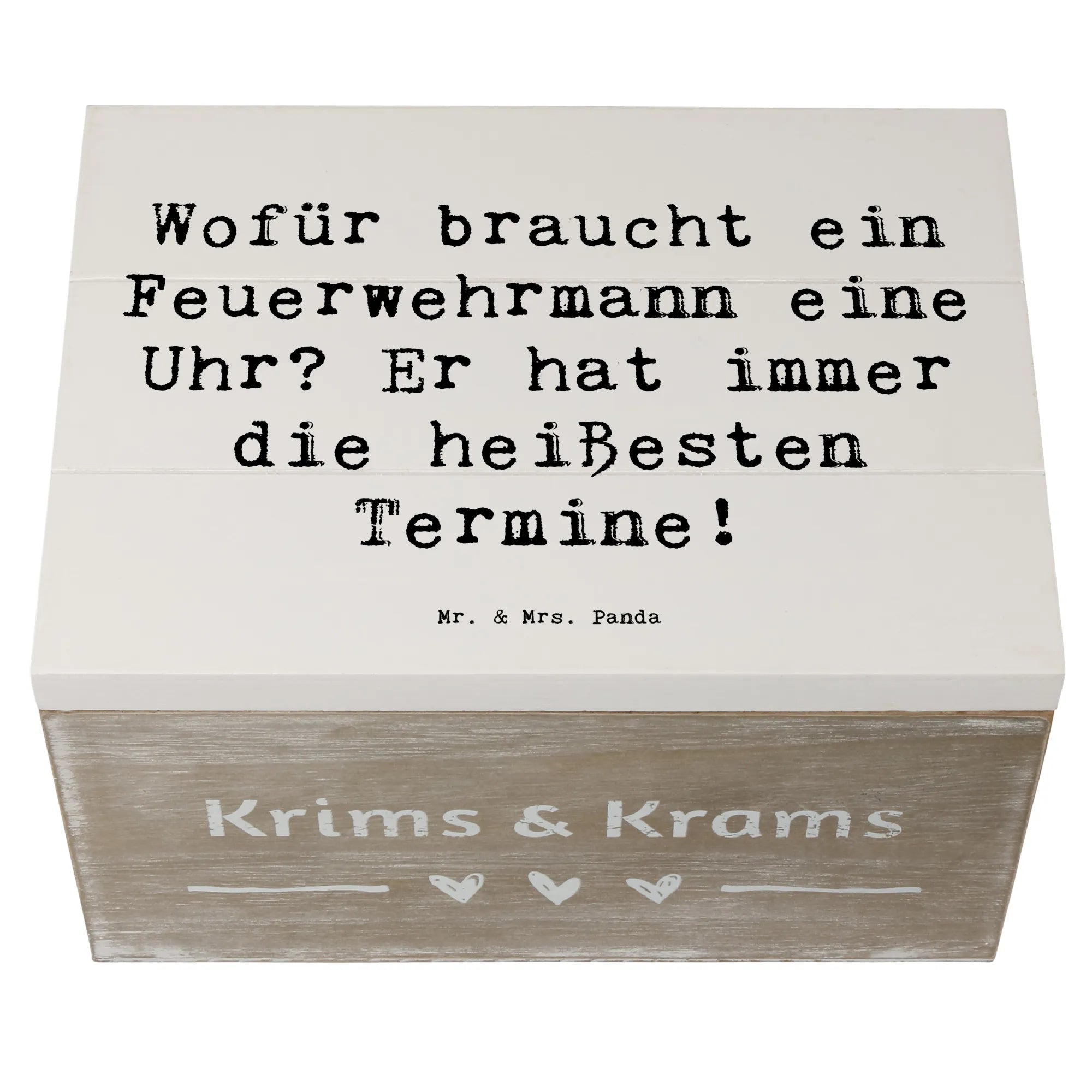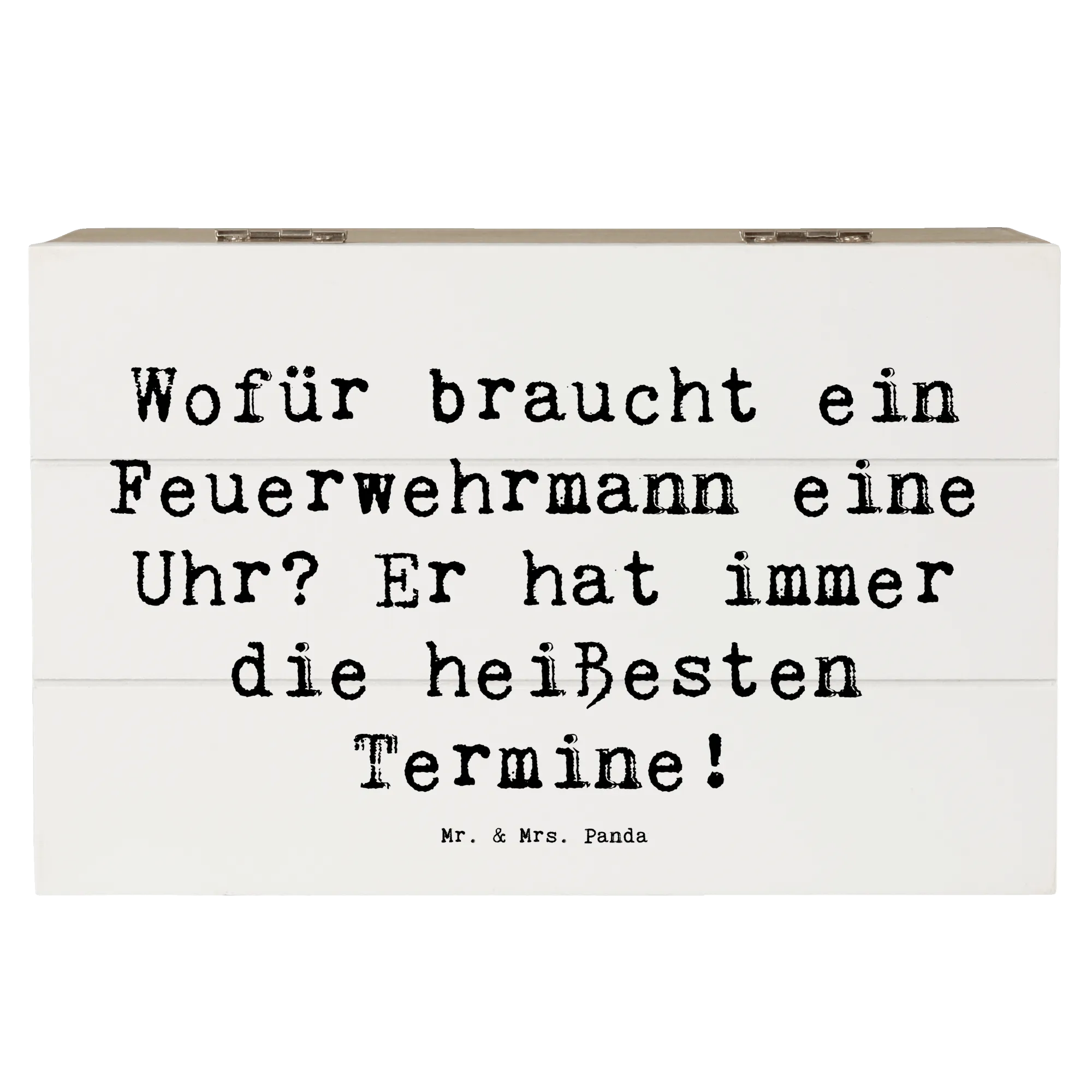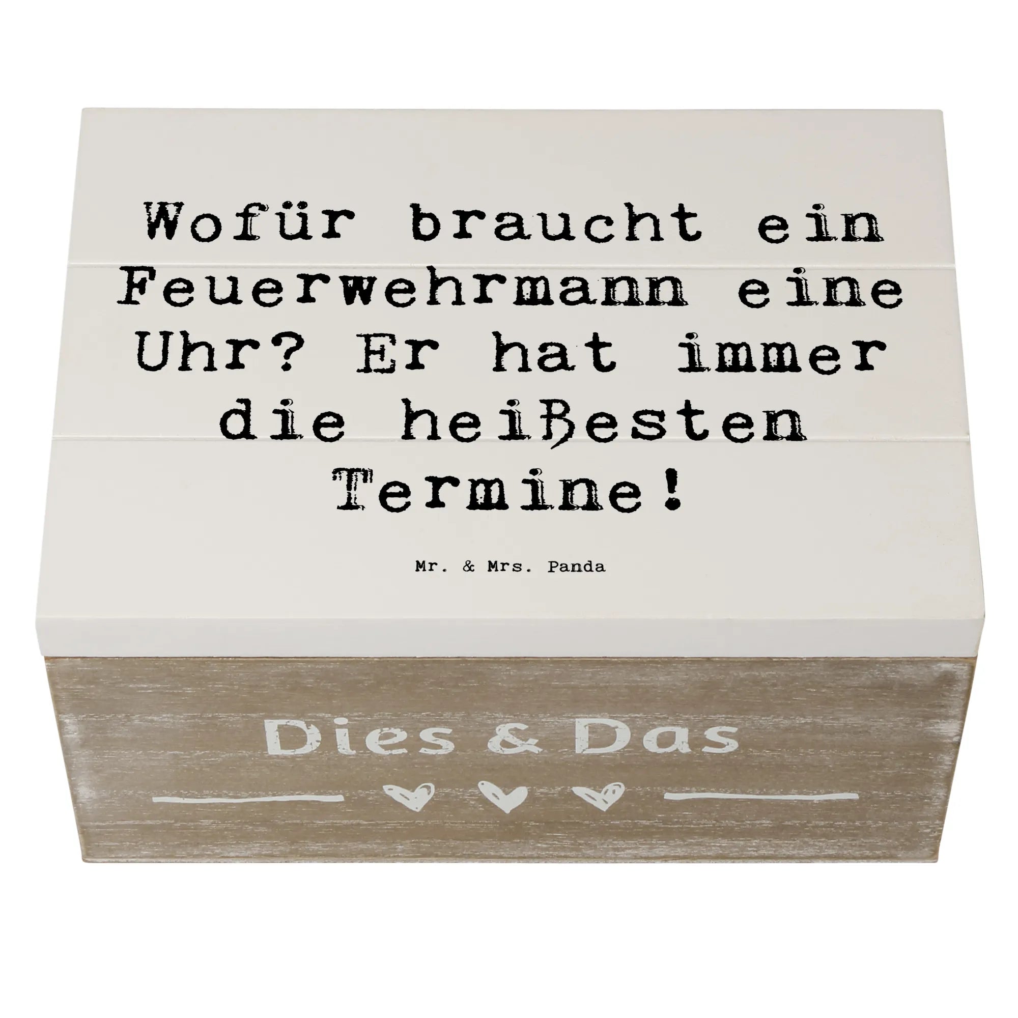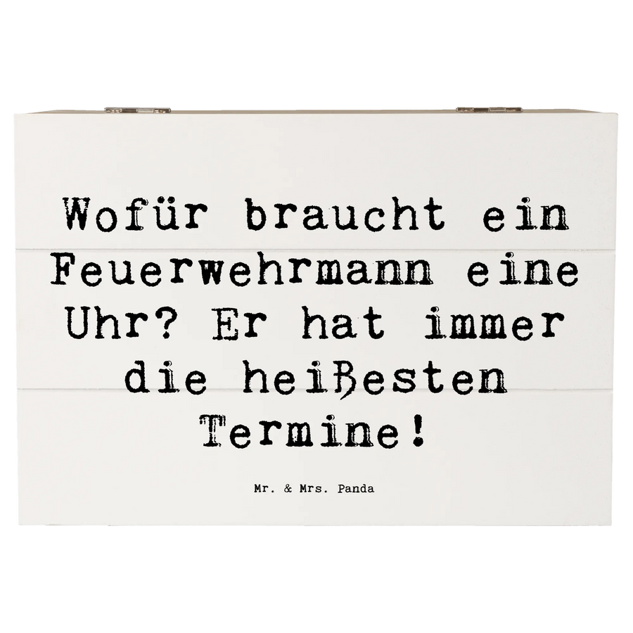 Unsere wundervolle Holzkiste Feuerwehrmann von Mr. & Mrs. Panda ist das perfekte Geschenk für alle, die sich für diesen mutigen Beruf begeistern! Mit dem liebevollen Spruch "Wofür braucht ein Feuerwehrmann eine Uhr? Er hat immer die heißesten Termine!" macht diese Schatzkiste nicht nur optisch etwas her, sondern bringt auch eine humorvolle Note mit sich.