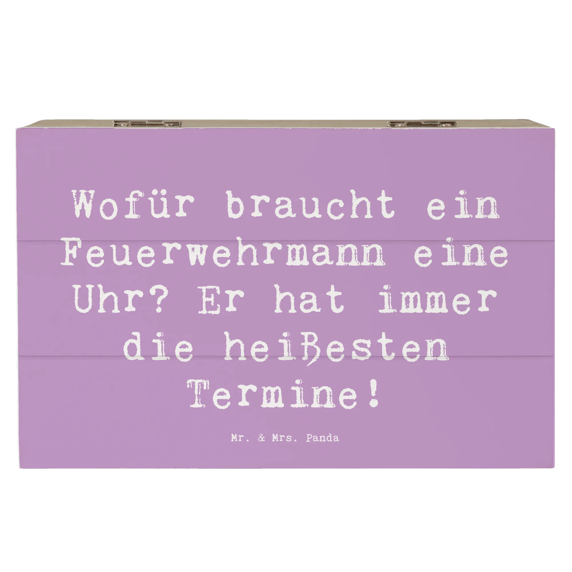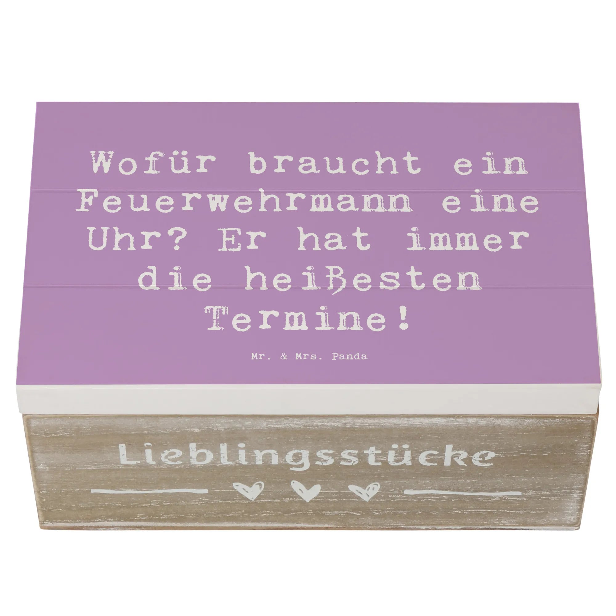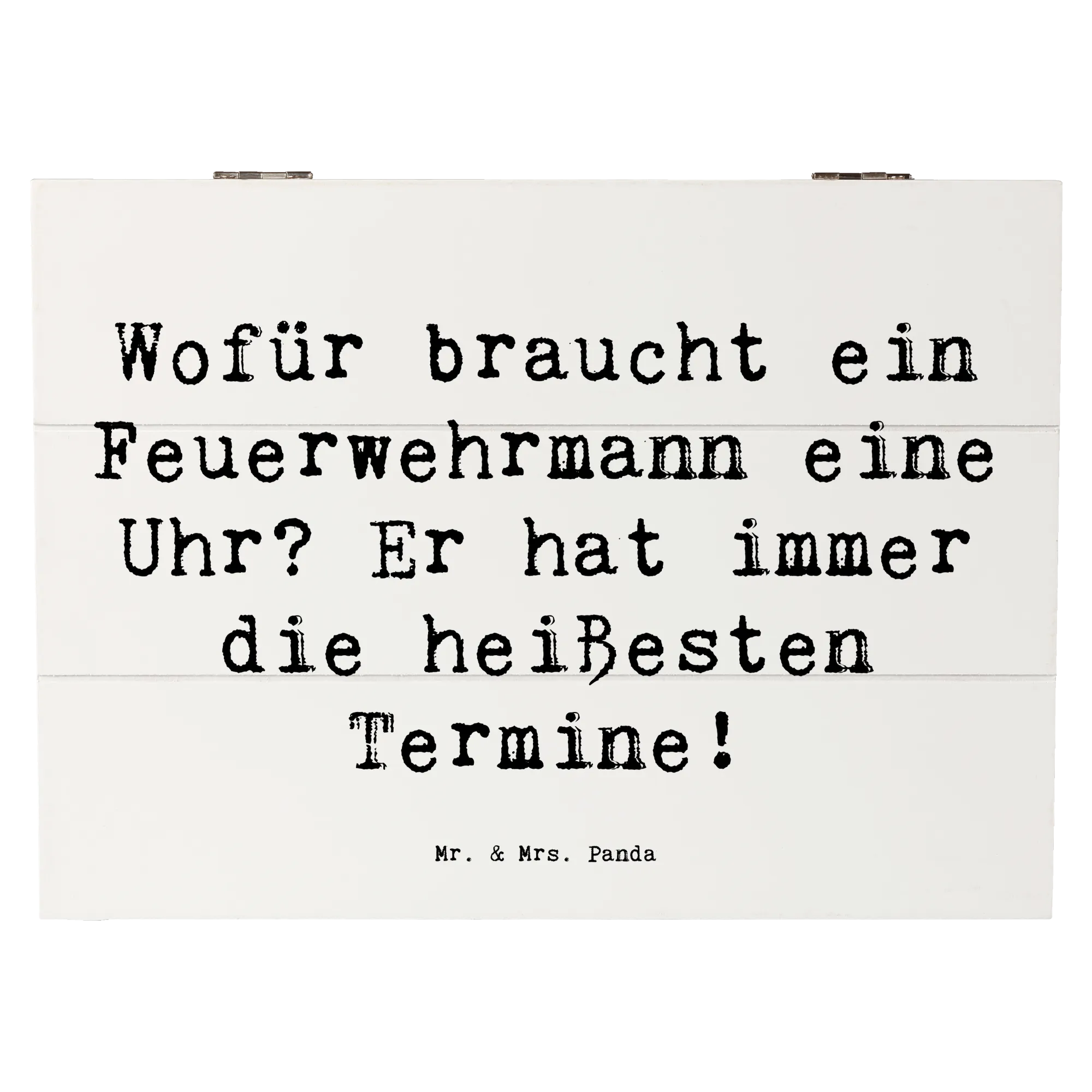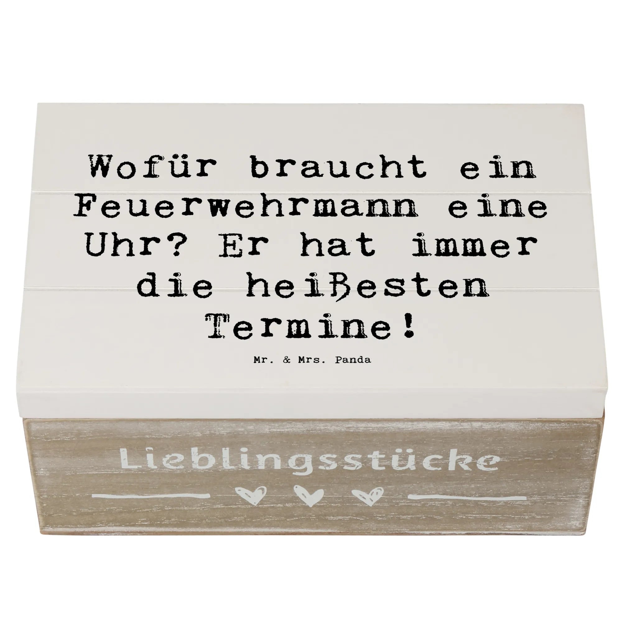 Unsere wundervolle Holzkiste Feuerwehrmann von Mr. & Mrs. Panda ist das perfekte Geschenk für alle, die sich für diesen mutigen Beruf begeistern! Mit dem liebevollen Spruch "Wofür braucht ein Feuerwehrmann eine Uhr? Er hat immer die heißesten Termine!" macht diese Schatzkiste nicht nur optisch etwas her, sondern bringt auch eine humorvolle Note mit sich.