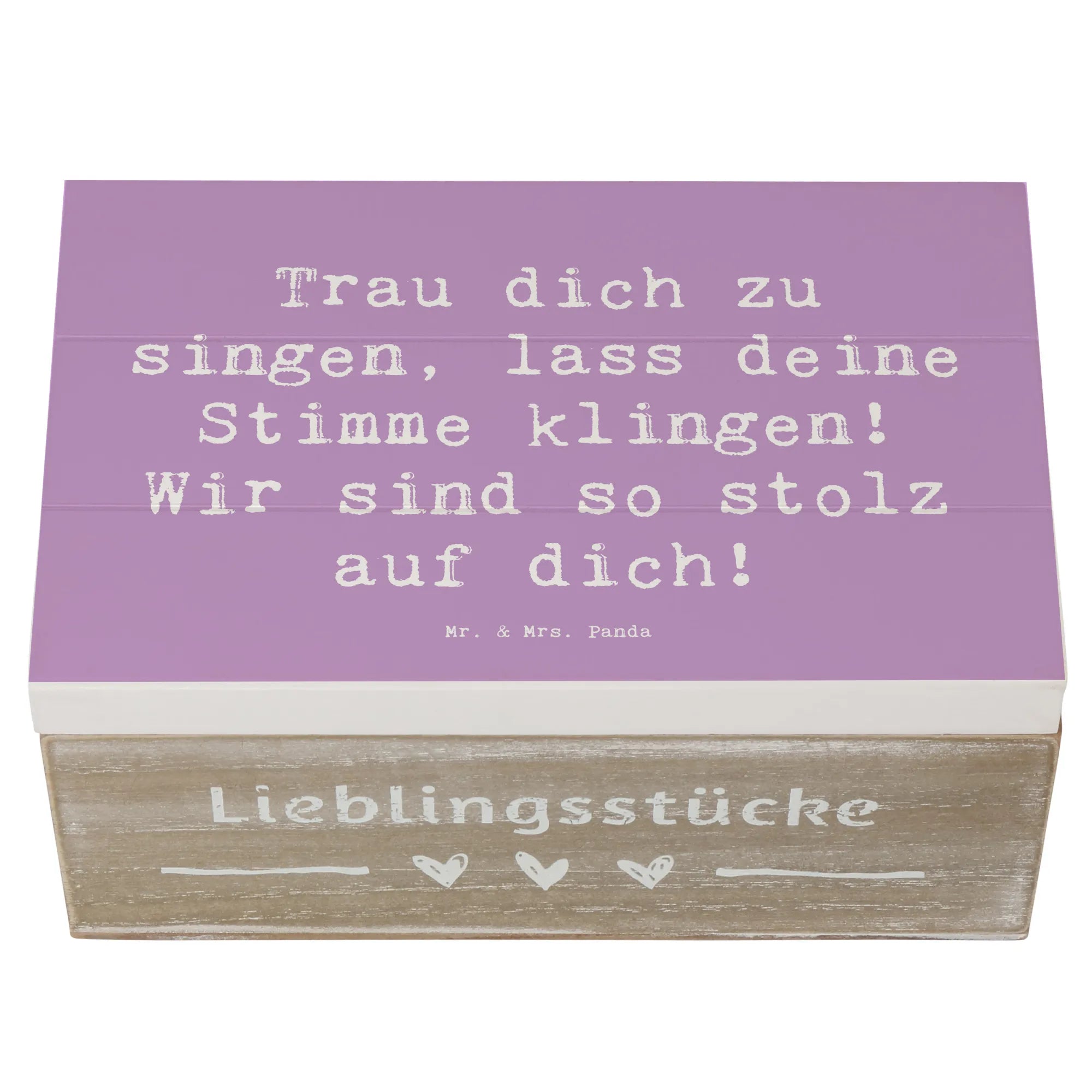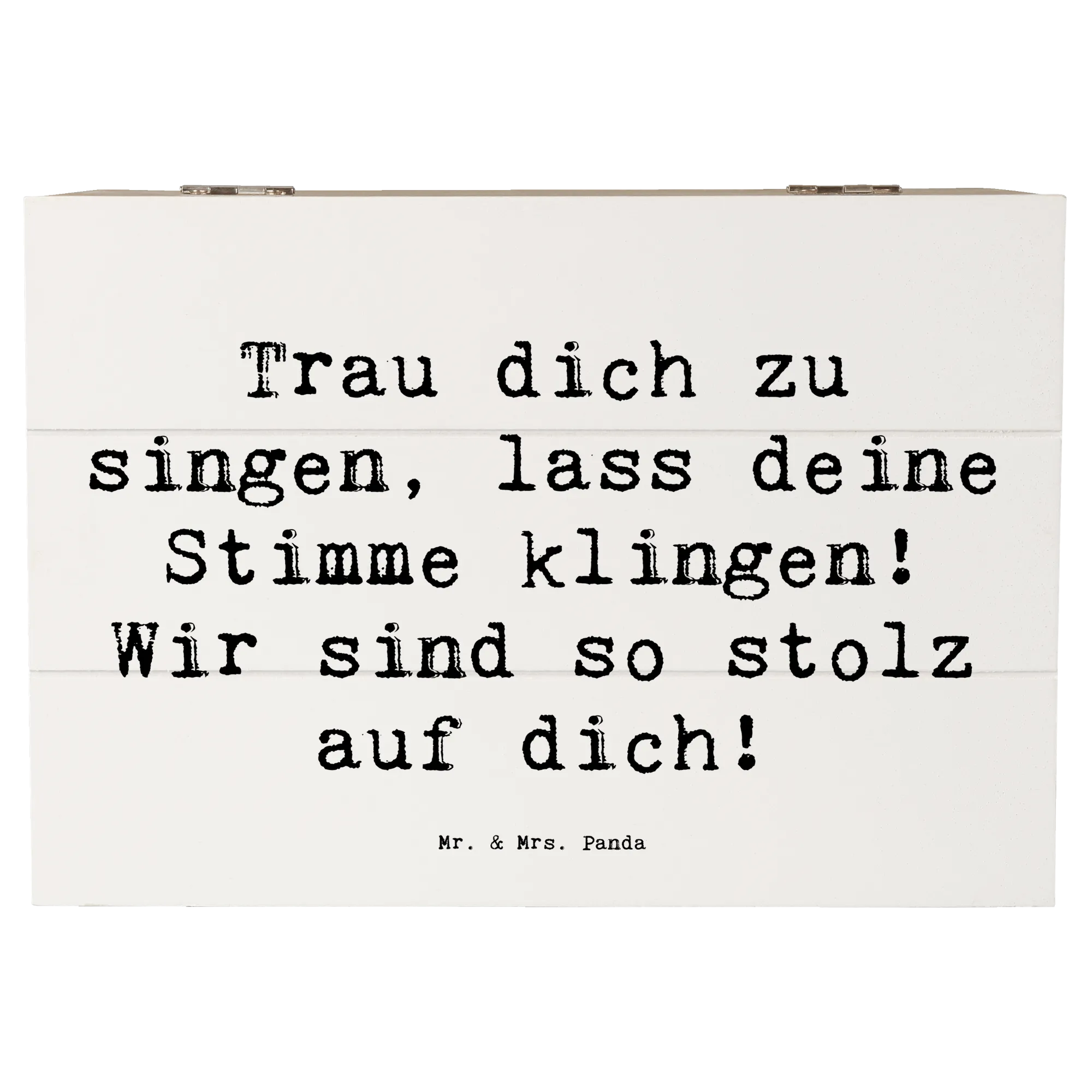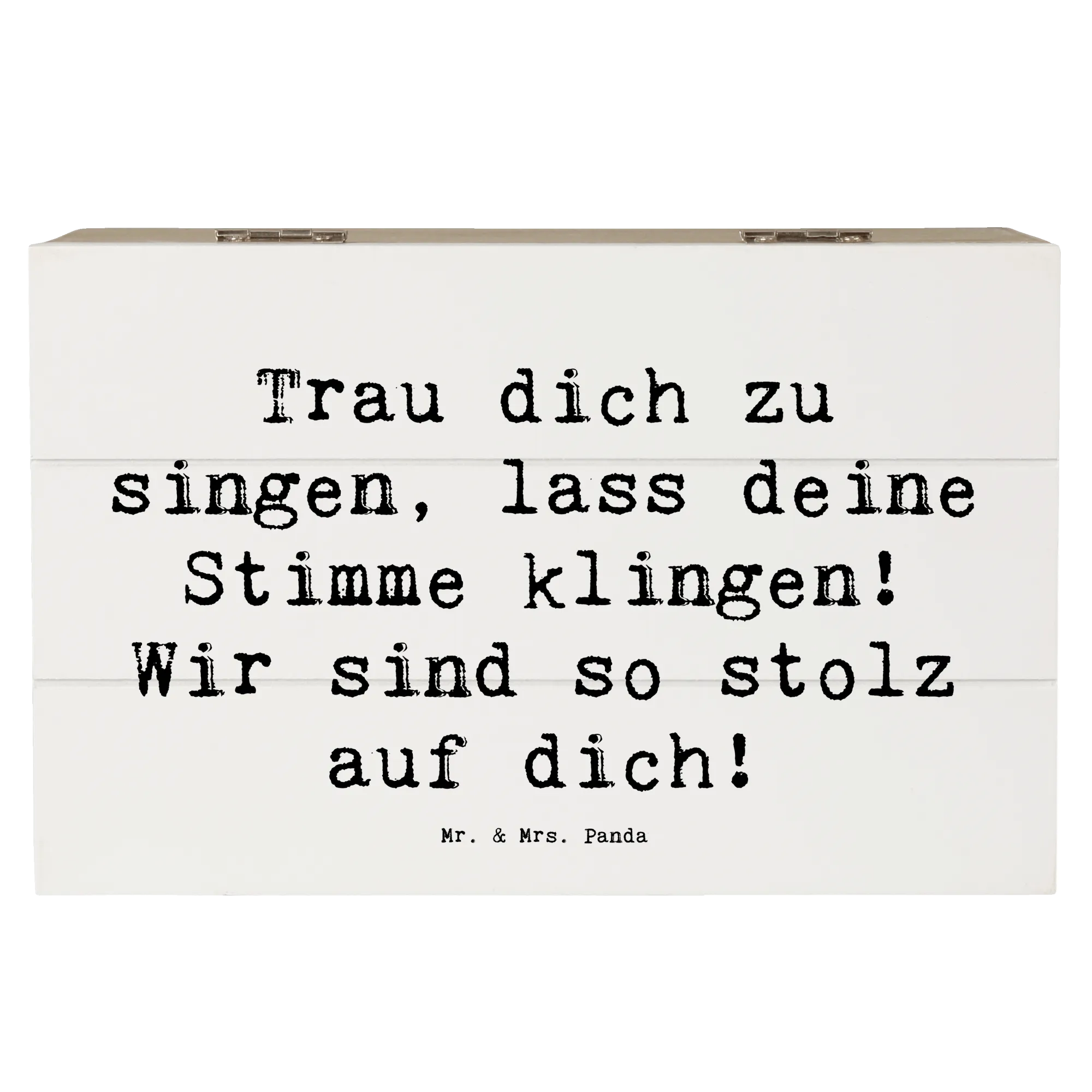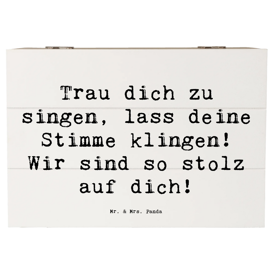 Die wunderschöne Holzkiste von Mr. & Mrs. Panda ist der perfekte Begleiter, um wertvolle Erinnerungen und Schätze zu bewahren. Mit dem inspirierenden Motto 'Trau dich zu singen, lass deine Stimme klingen! Wir sind so stolz auf dich!' aus der besonderen Kollektion Mutmacher, ist diese Schatzkiste ideal, um besondere Anlässe zu feiern oder einfach nur Liebe und Mut zu verschenken.