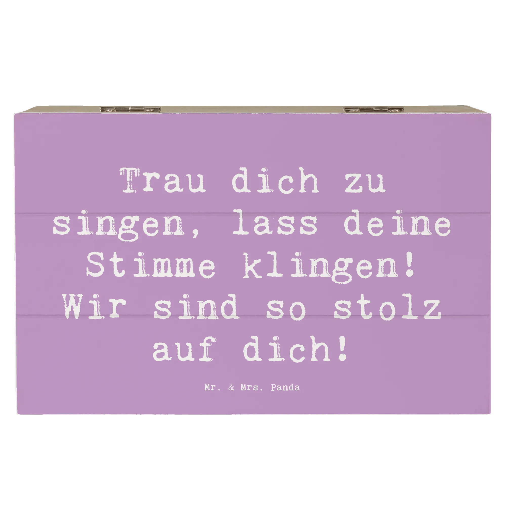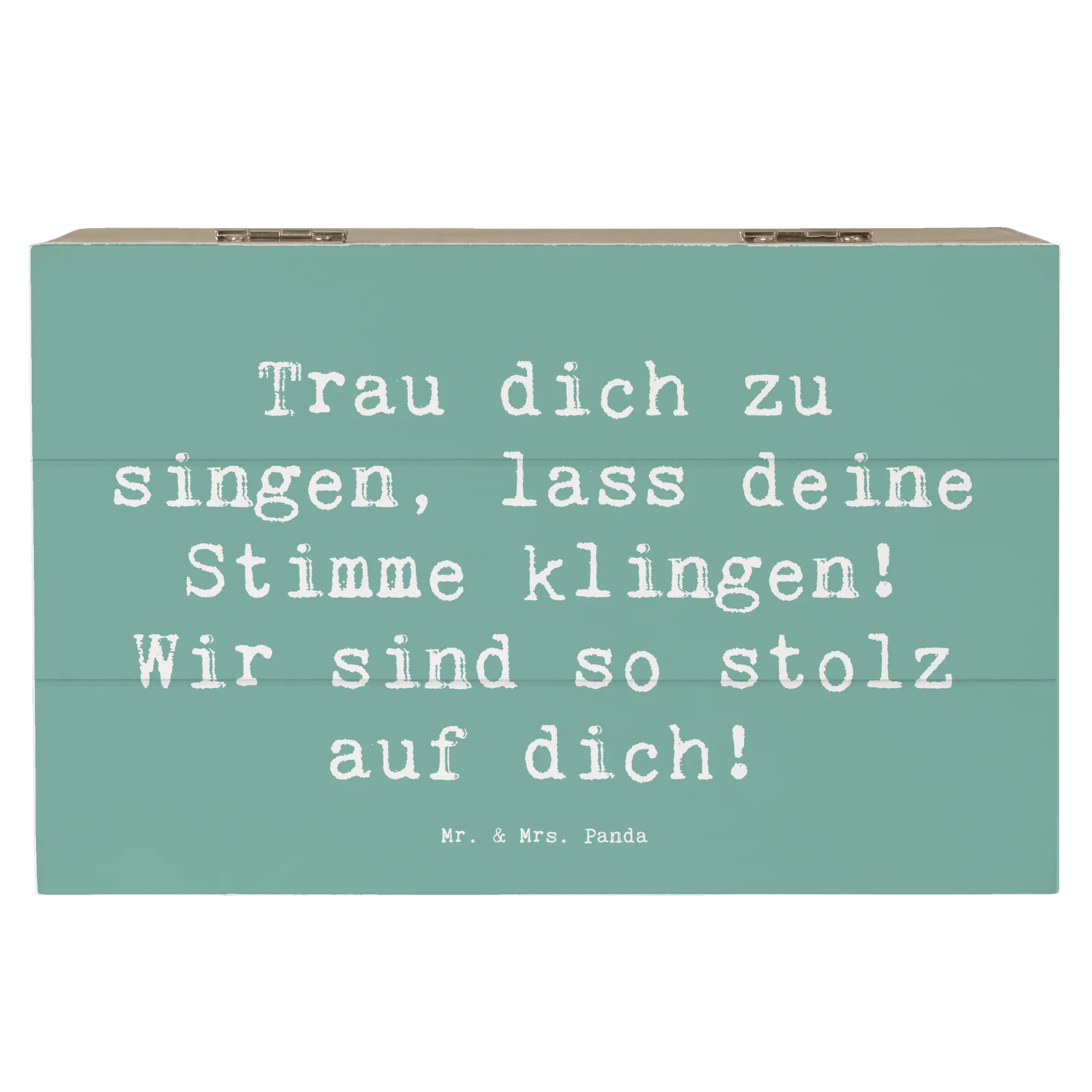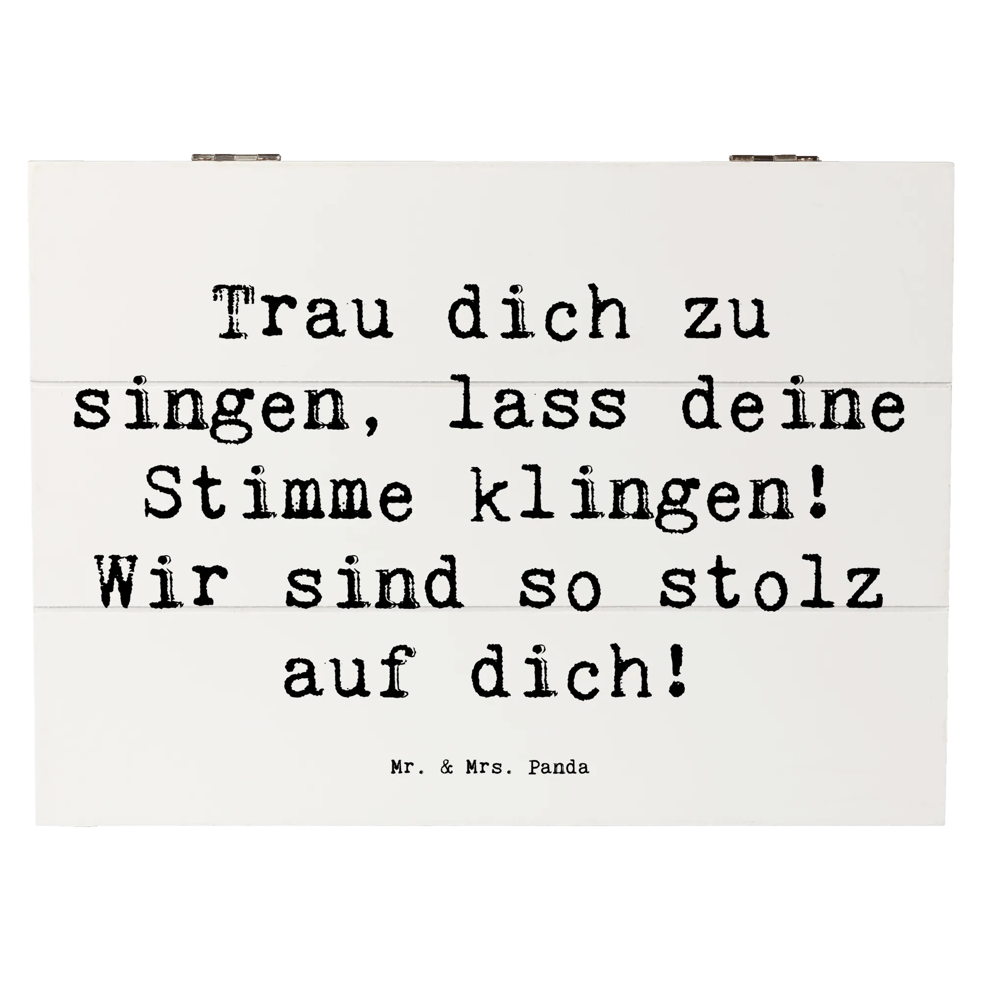 Die wunderschöne Holzkiste von Mr. & Mrs. Panda ist der perfekte Begleiter, um wertvolle Erinnerungen und Schätze zu bewahren. Mit dem inspirierenden Motto 'Trau dich zu singen, lass deine Stimme klingen! Wir sind so stolz auf dich!' aus der besonderen Kollektion Mutmacher, ist diese Schatzkiste ideal, um besondere Anlässe zu feiern oder einfach nur Liebe und Mut zu verschenken.