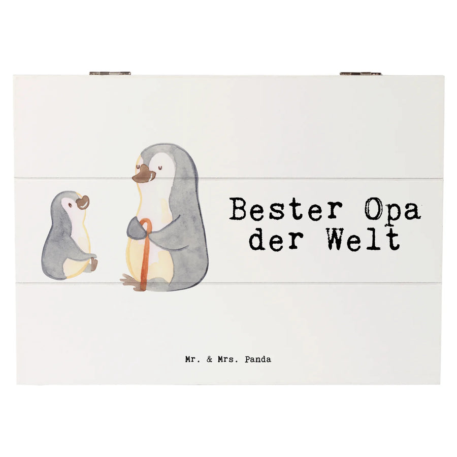 Skrzynia drewniana Pingwin Najlepszy dziadek na świecie - 25 x 18 cm - Biały