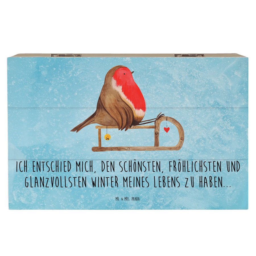 Skrzynia drewniana rudzik sanki - 19 x 12 cm - z napisem - lodowoniebieski